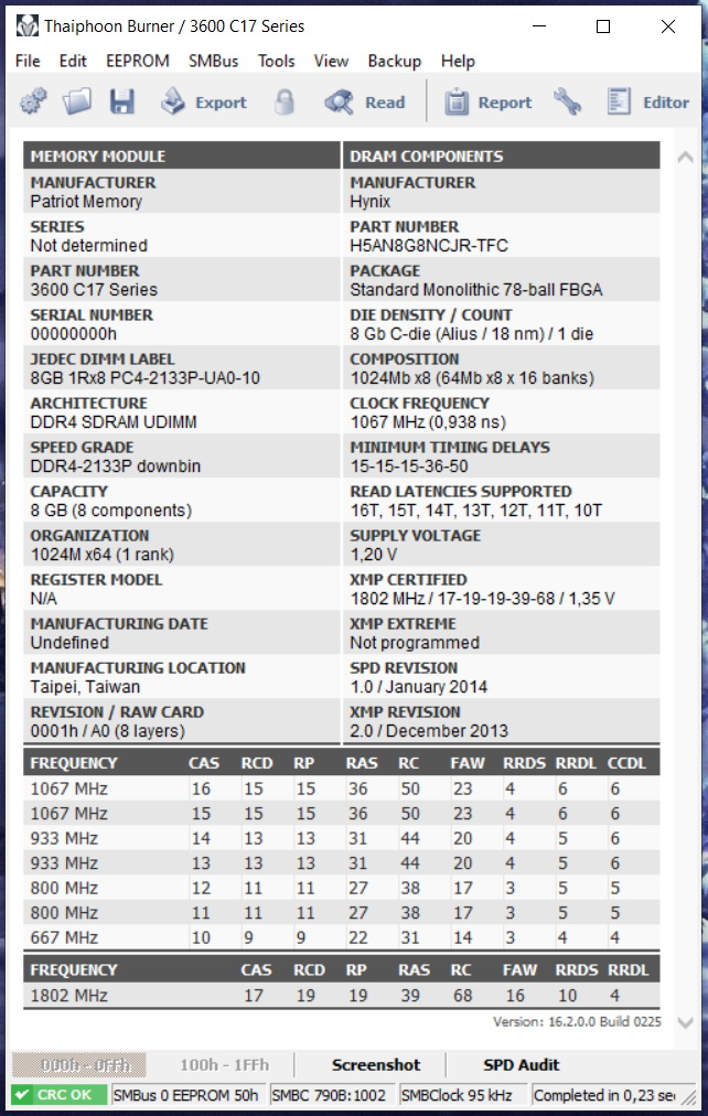 Хочу добиться хороших таймингов на 3.600 (выше не гонюсь, не вижу смысла). Тайминги брал с программы «DRAM Calculator for Ryzen v1.7.3.» В неё я загружал свой XMP профиль с «Thaiphoon Burner».