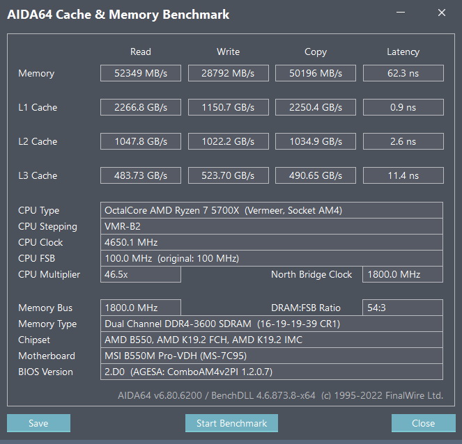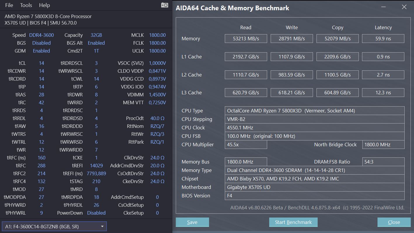 Спасибо за отклик. Тайминги обновил, vSOC 1.05V выставил. Система стабильна. Единственное но, в бечмарке аиды каждый раз разные результаты (раз 5 тестировал), особенно это бросается в глаза по L3 кэшу (показатели стали немного меньше). Хотя по всему L1-L3 показатели стали немного меньше (на скриншоте так сказать лучший результат). Это нормально что по "L кэшу" так скачат показатели? Скорость работы памяти с вашими таймингами немного выросла. Жалко что латентность не особо уменьшилась. Стоит ещё память (тайминги крутить)?