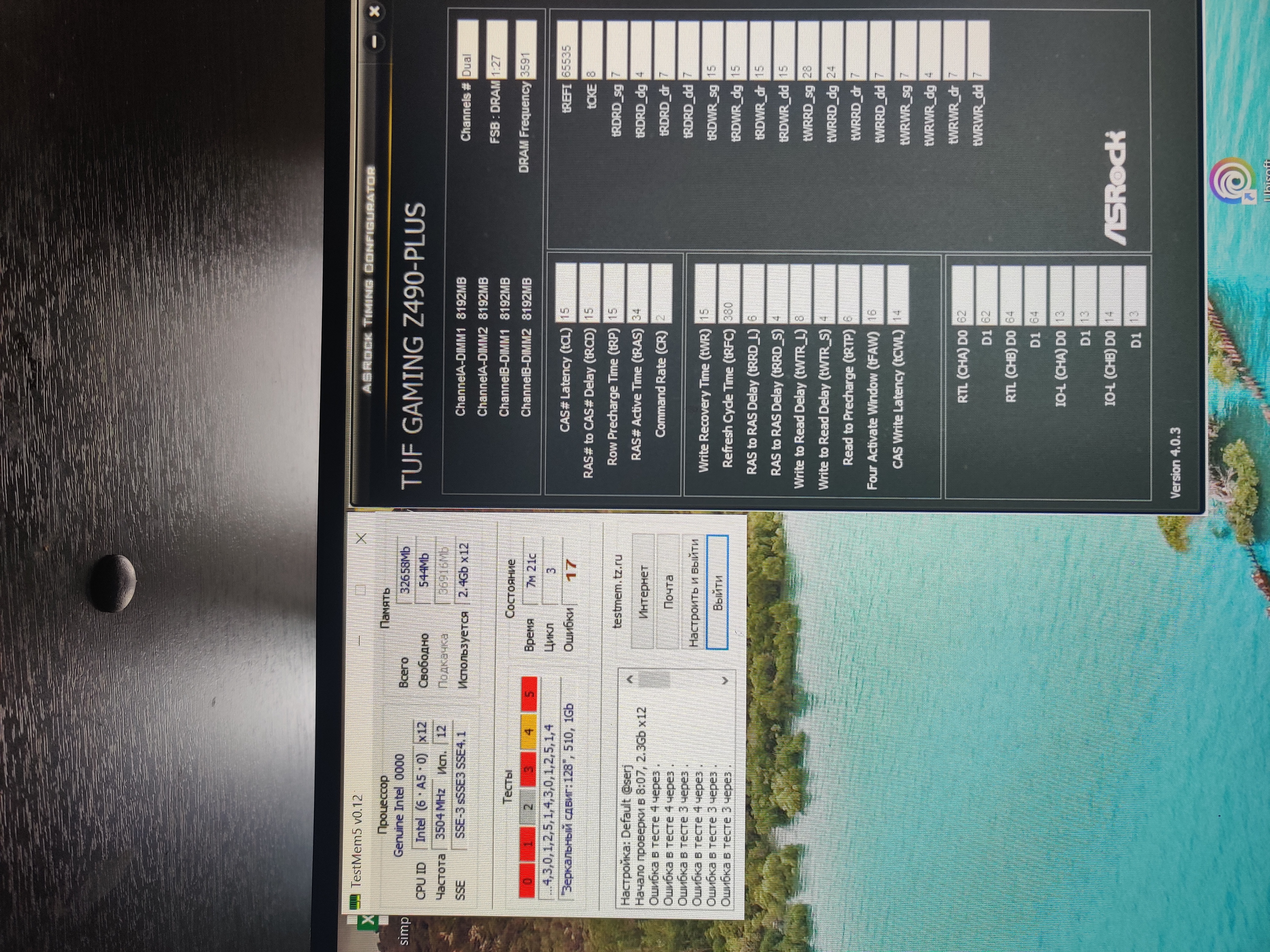 Всем привет! Стоит оперативная память 4х8 crucial CMR16GX4M2C3466C16 samsung b-die если вставить 2 планки берет 4000+ 17-17-17-38 4 планки 3800 16-16 с ошибками сейчас стоит 3600 15-15-15-34 тоже ошибки хочу найти стабильность может посмотрите что можно сделать? старался все делать по таблице mce отключено so-1.27 sa-1.3 dimm-1.4 (1.45 тоже ошибки) плата asus z490 tuf gaming i5 10600k все делал без разгона процессора спасибо