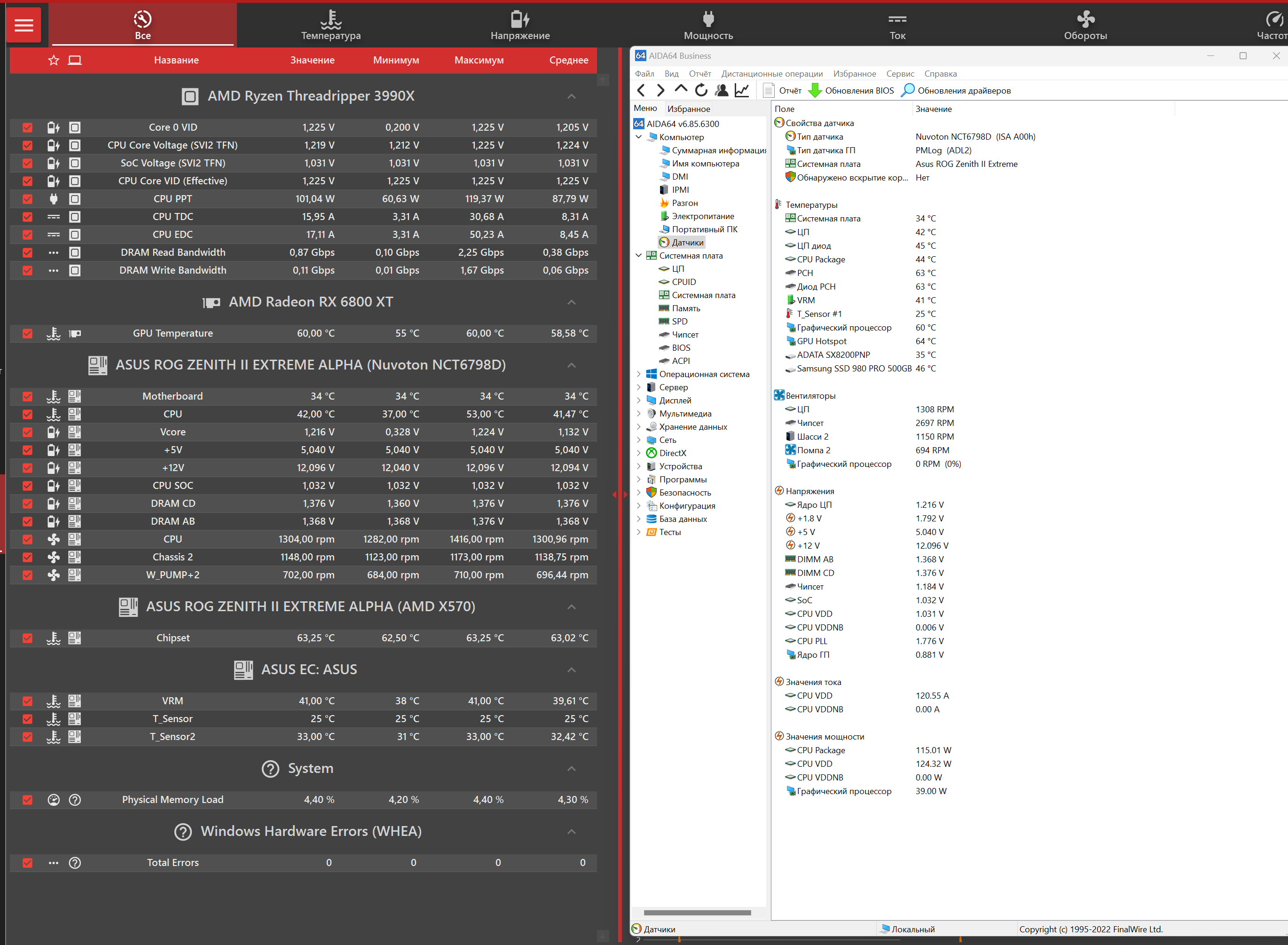 Еще раз конфиг: AMD Ryzen Threadripper 3990X, 3800 MHz (Рагознан, фикс); Asus ROG Zenith II Extreme Alpha; Kingston Fury KF3200C16D4/32GX 8 штук, 256Гб; Напряжение 1,39; БП 1200W