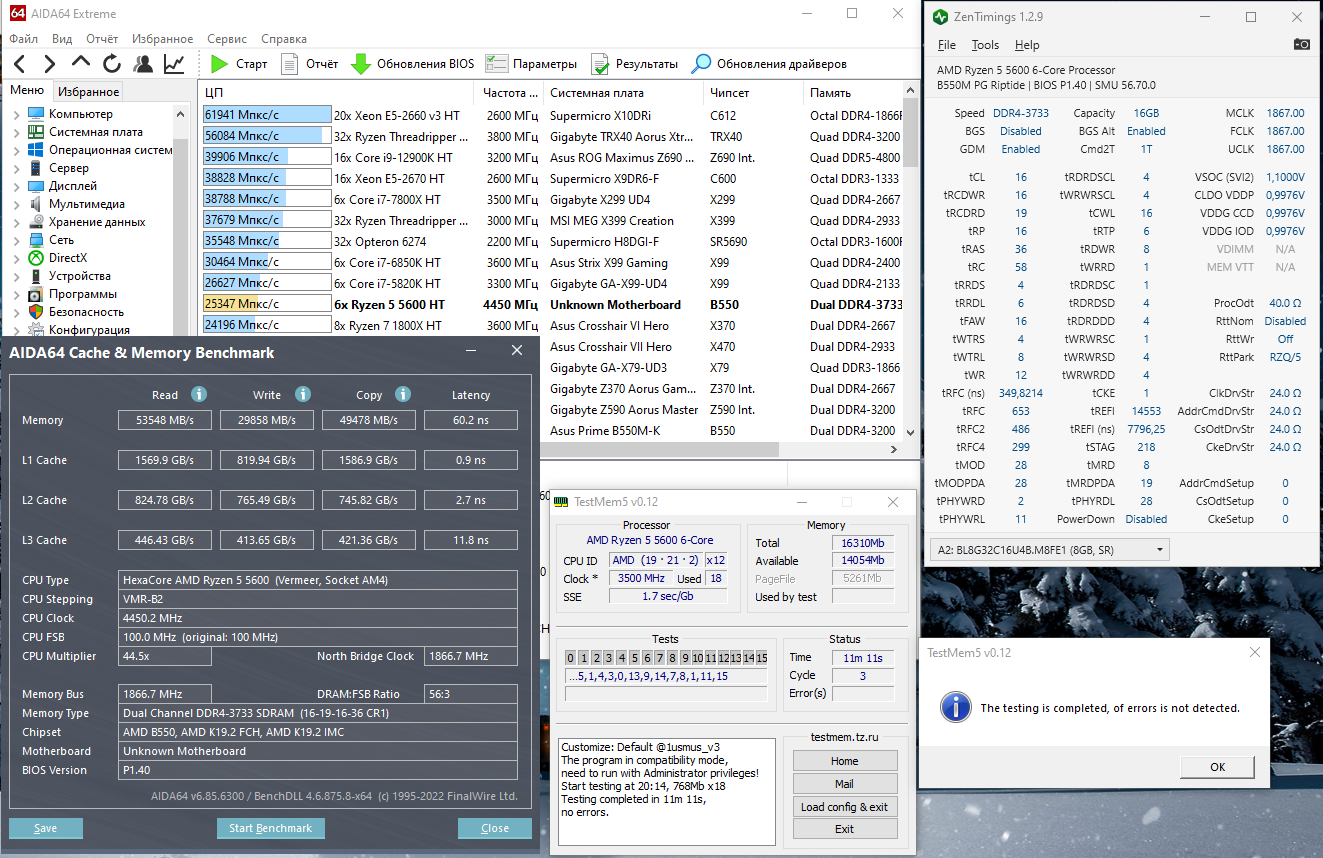 Тут у меня вылезла другая проблема. На частотах 3600 (тайминги приложу, вы мне их корректировали) vDIMM 1,35, vSOC 1.05, всё остальное в «авто» начали вылазить ошибки в программе ТМ5.