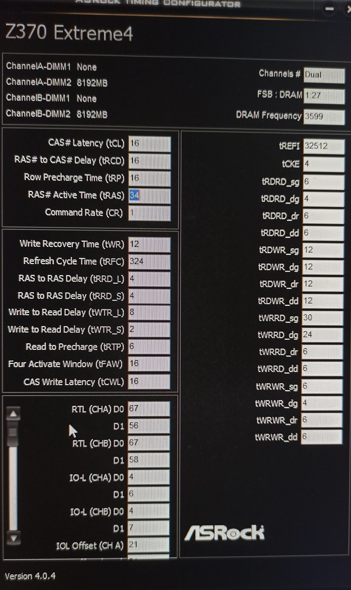 Нет конечно, не цифры в АИДЕ. Ну вот нашел я тайминги 16 16 16 34 CR1 на частоте 3600, далее же надо для максимального профита от первичек, настроить вторички и третички. По таблице от Anta встали все кроме tREFi на 65000. На сколько я понял, таблица показывает что и где поставить, но все же она не идеальна, т.к. она универсальная, ей пофиг B-die или E-die у тебя, одноранг или двуранг модули. Исходя из моих модулей (картинку из тайфуна выше прикладывал), нужно ли что-то подкрутить во вторичках и третичках?
