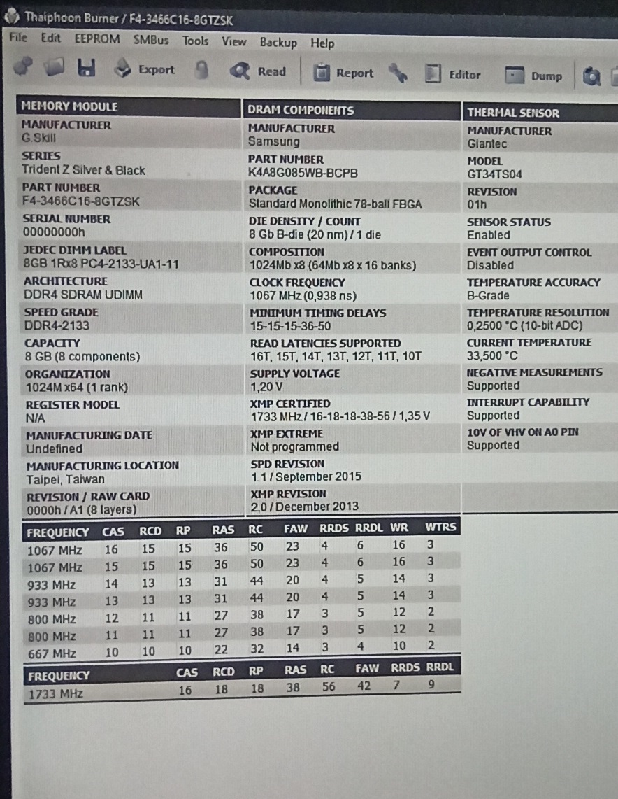 [img]Ссылка на скрин[/img] Для сбора статистики по установленным чипам памяти просьба прикладывать скрины программы Taiphoon Burner и указывать напряжения на DIMM, IO и SA![/color]