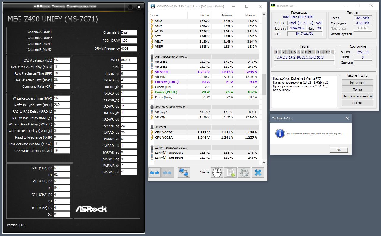 P.S. На этих же таймингах едет на 4400Mhz при v1.53, IO/SA те же самые, ODT переключил в [Auto]. P.P.S. tWTR_S/tWRRD_dg можно понизить на 1
