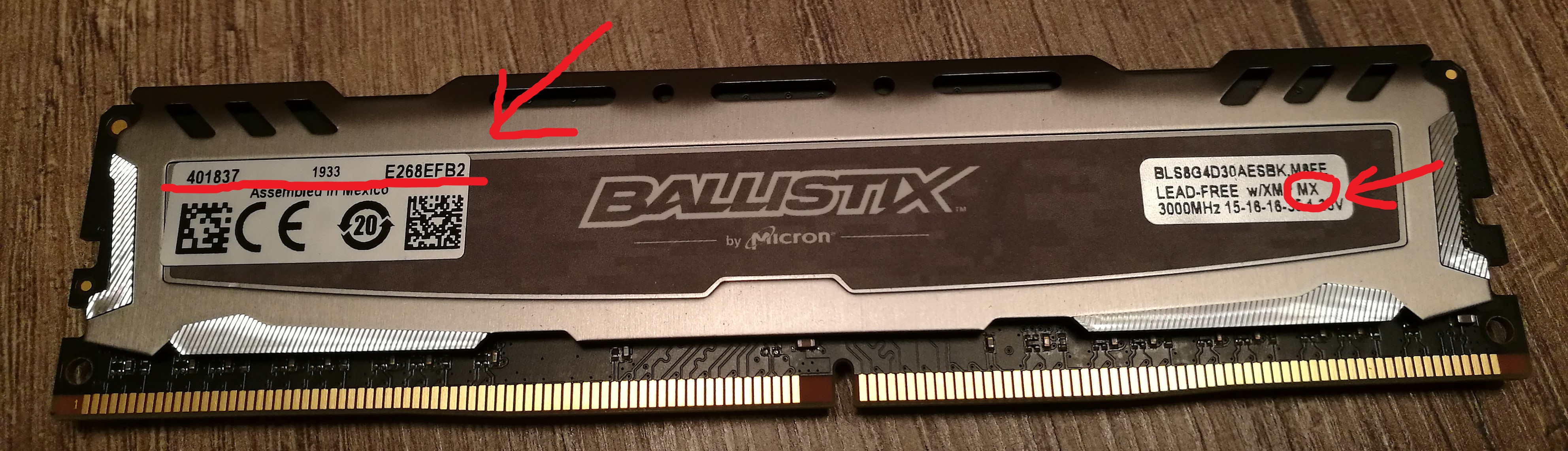 Решил все таки докупить оперативку - БУ на Авито, аналогичную своему комплекту Crucial Ballistix Sport LT BLS2K8G4D30AESBK DDR4. На руках есть - BLS8G4D30AESBK.M8FE (надпись с наклейки на самих чипах). В следующей строке маркировки ниже видел отличия - бывает HO или MX. Или на это уже не обращать внимание и достаточно совпадения основной маркировки?