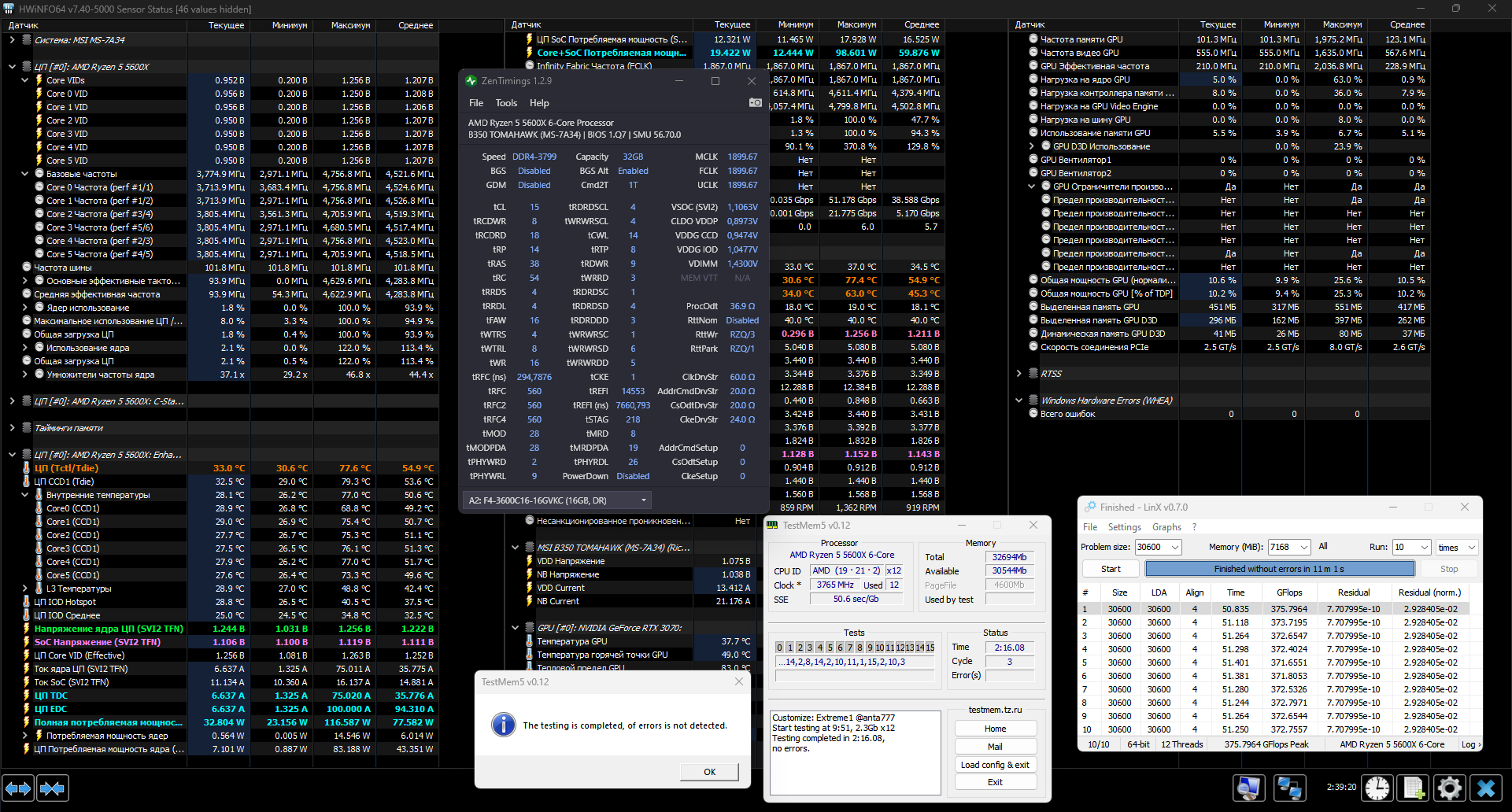 Спалил основную систему, пришлось перебираться на подножные железки. ЦП 5700х, Мать - MS-TERMINATOR B550M, память две m378a2g43mx3-ctd (с чипами с одной стороны).