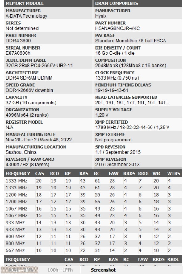 Это здорово. 128 гигабайт памяти заполнил. Собрано на 4х плашках. Все плашки двухранговые по 32 гигабайта. Две плашки микрон, две плашки хайникс. Было 64 гига на двух плашках микрон. Провел апгрейд. Пошел ДНС, купил такую же память XPG Spectrix D45, объемом два по 16, еще 32 гига. Пришел, а новые плашки на памяти самсунг. Не хотят все плашки вместе работать на XMP 3600 и даже на 3200. Пошел обратно в ДНС, поменял 32 гига на 64 гига, такой же памяти. Запустил комп,а она хайникс. Но с моими микронами завелась. XMP 3600, все 4 плашки двухранговые запустились на частоте 3866 с зафиксированной частотой инфинити фабрик 1933. Тайминги на 3866 не жмутся, при пониженной частоте жмутся.