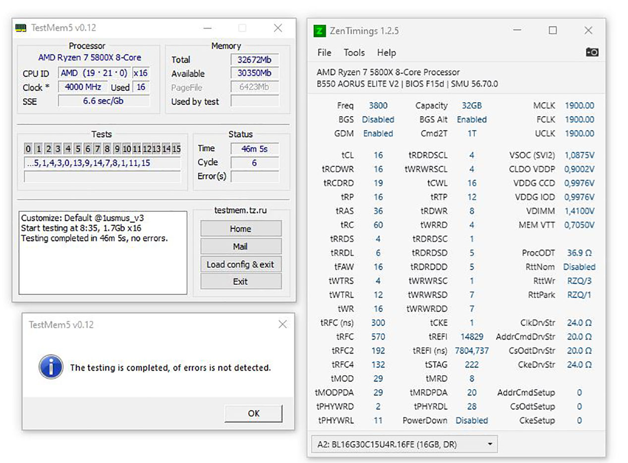 Далее можно аналогичным образом пробовать еще ужать первички: 16-19-19-19-41 60 или сразу 16-19-19-19-39 58, ниже чего уже вряд ли поедет. Здесь также нужен полный тяжелый тест. Вообще, рабочий tRC находится быстро, так как с кривым просто не будет старта, будет бсод или рой ошибок сразу вначале. Так что его легко определить отдельно.