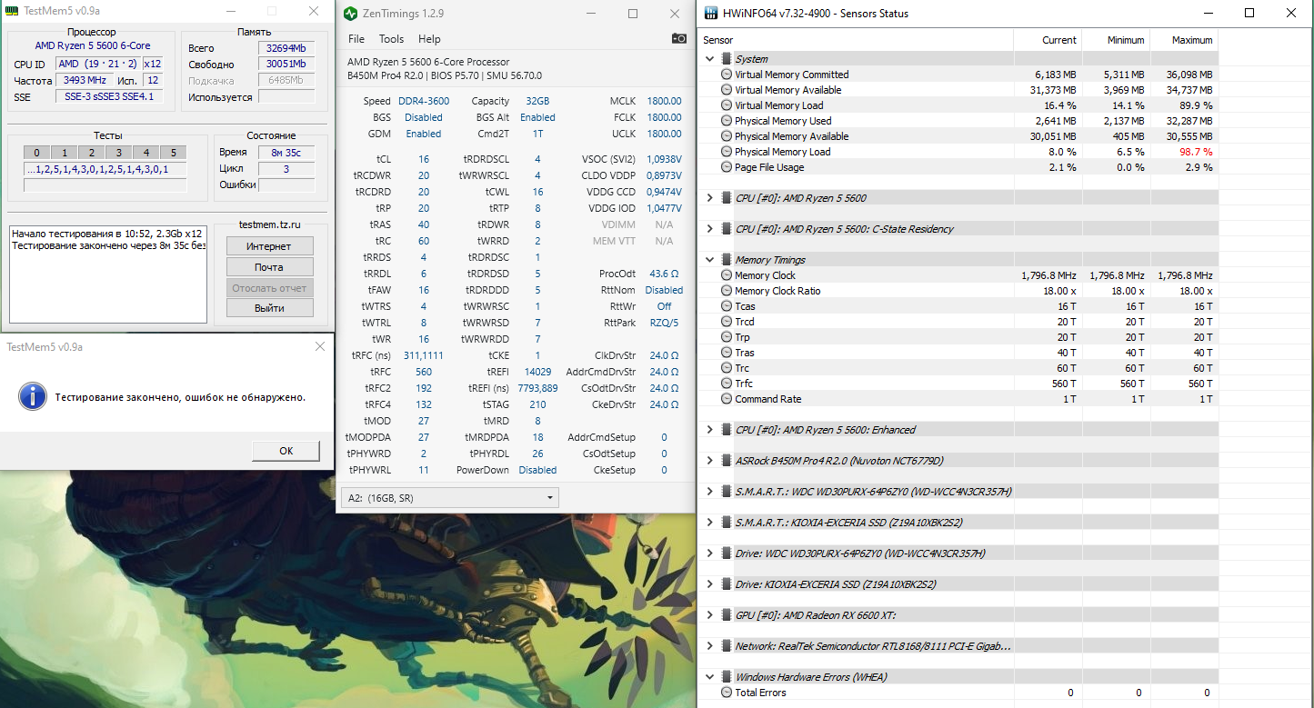 установил напряжение 1.45 при 3600, не завелись. наверное та самая яма. комп стартует, но черный экран, ни чего не грузит, потом идет сброс биоса .... на 3200 и 1.25 тест проходит норм. не знаю, может ли эта память вообще 3600 взять и больше.