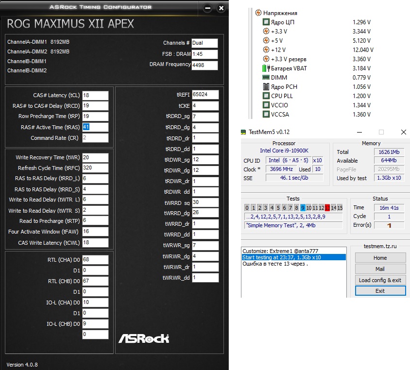 Привет всем. Накинул для пробы вот так пока, по первичкам, Trefi и напряжению с частотой прошелся. На 15 минуте тестмема выбил ошибку - не все так плохо оказалось. Что можно подправить? Буду очень признателен за возню со мной. #77