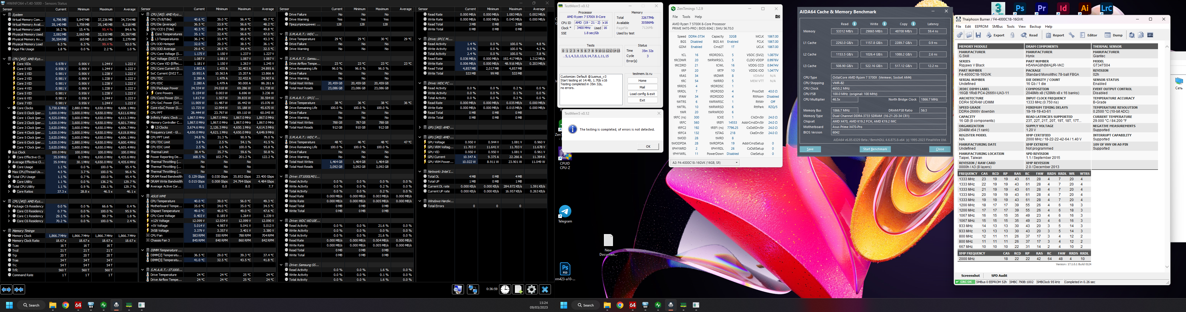 Ставил всё курил вертел по всякому все равно ошибки есть. Раньше у меня на 2x8 было 3800с16 , мб остаться на 3733с16 , я думаю не сильно теряю в производительности. Просто я так подумал, ну сейчас заведу на 3800 с более плохими таймингами и не будет ли это хуже чем 3733?