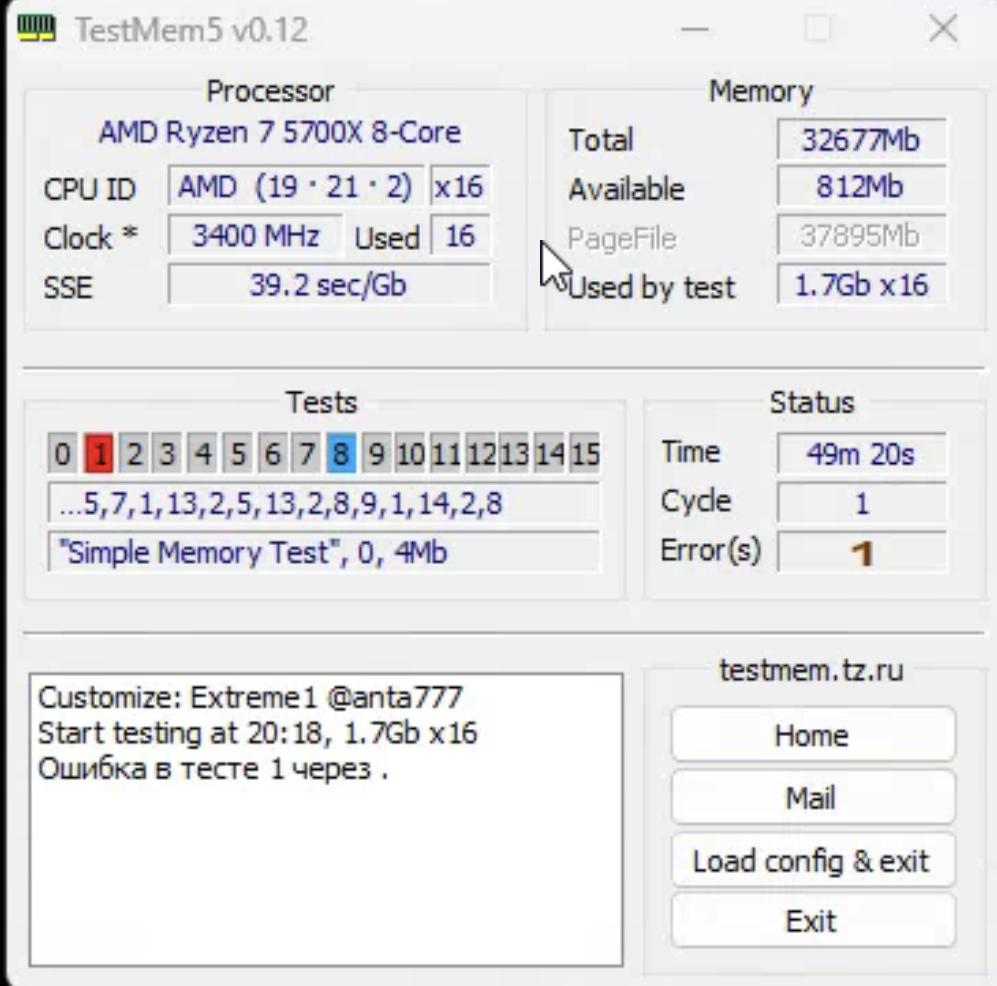 7. При желании протестировать память избыточным тестом в TM5 с конфигом 1usmus_v3 меняем количество 3-х циклов в "mt.cfg", "cycles=3" скажем на 8 или более