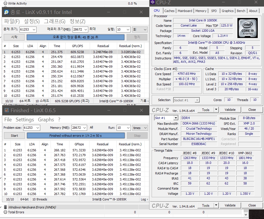 Хм, а tRFC ниже это же хорошо? Поставил 300 вместо 648, и tREFI во всю выкрутил, тест прошел. Что странно, когда было две плашки этих модулей, то этот же тест проходил без ошибок с 4000c16-17-17-28, а сейчас даже 3800c16-16-16-36 не может
