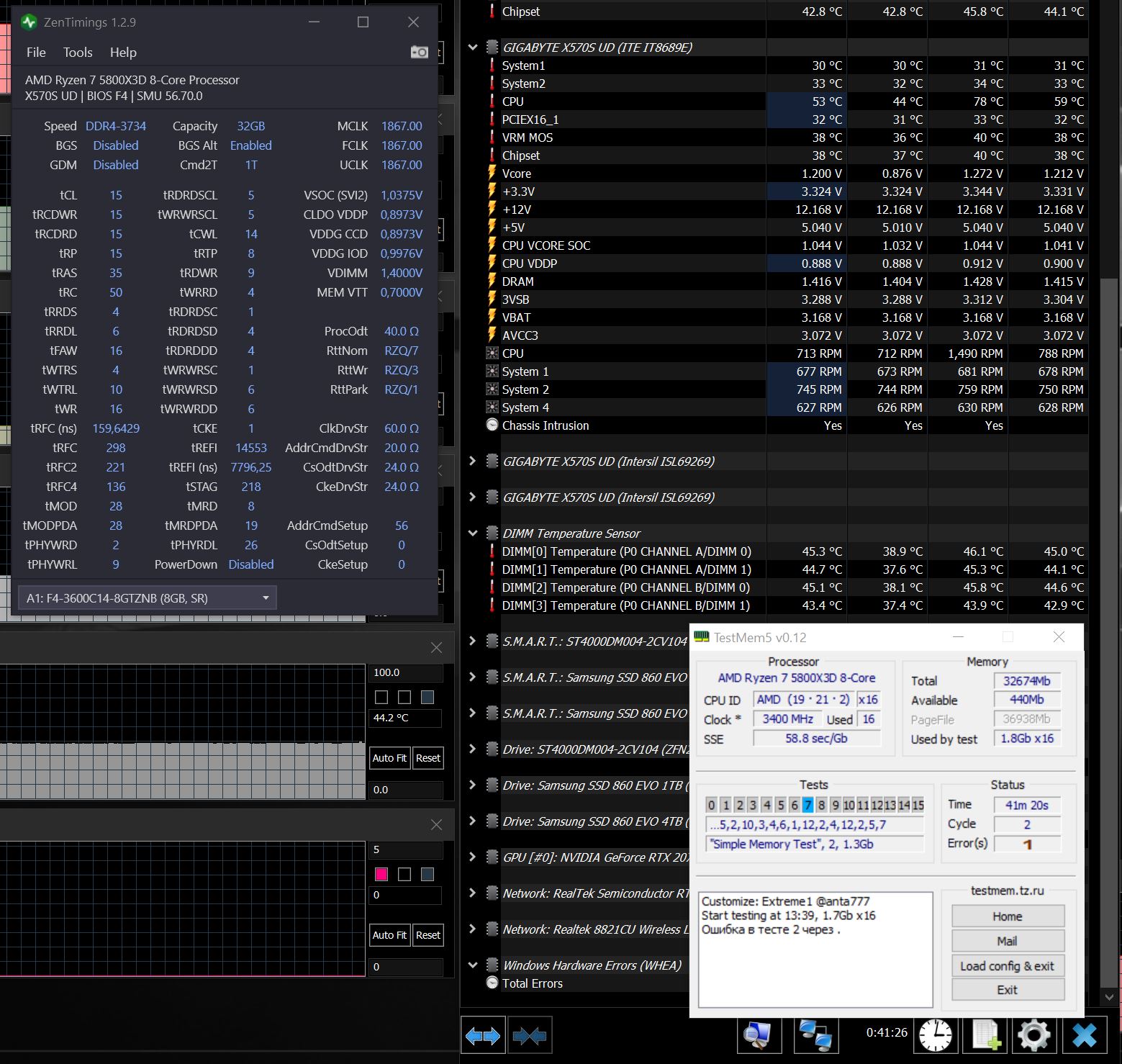 на 5800х тоже такая засада. но на МП как и у тебя, удалось поднять память шиной с 3733 до стабильных 3780 с IF1890: https://imgbb.su/image/x7Rwzh , идет и дальше, но уже только с WHEA.