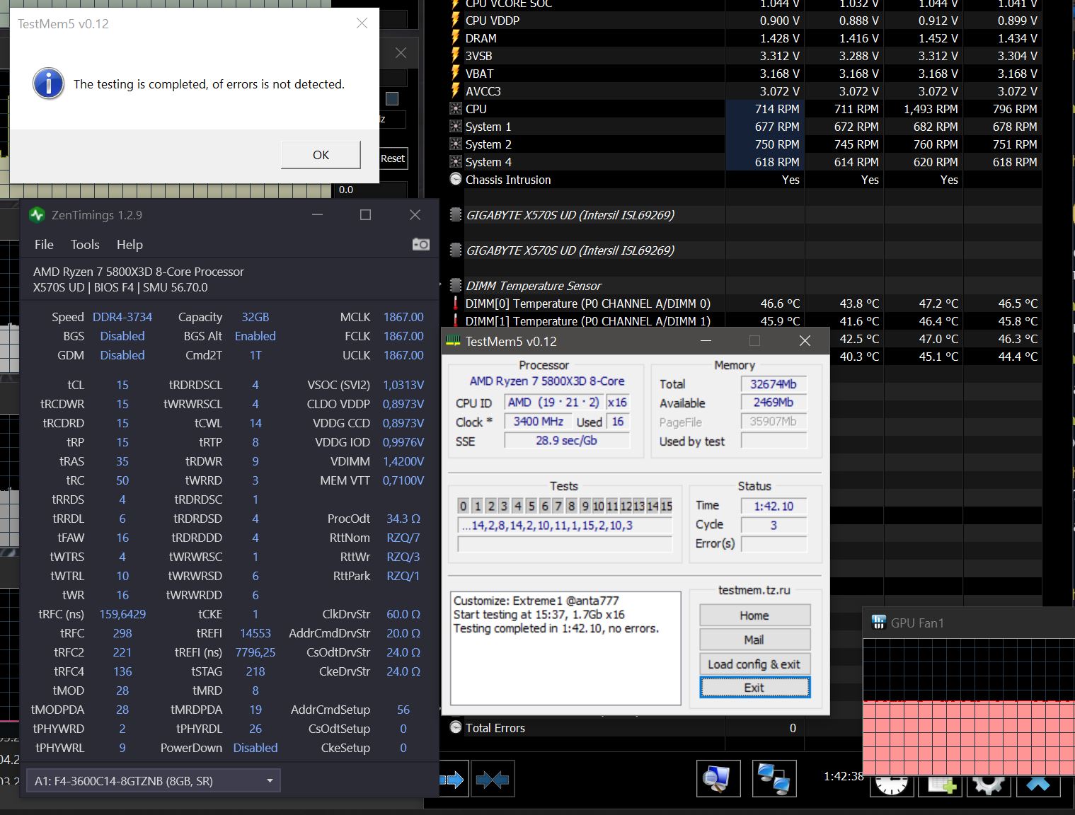 4. Перед настройкой частоты и таймингов рекомендуется установить принудительное охлаждения на модули памяти, особенно для памяти с чипами Samsung B-die, повышение температуры памяти выше 48°, может сопровождаться дополнительными ошибками, не связанными с неправильной настройкой таймингов, что затруднит их поиск и общую настройку памяти.