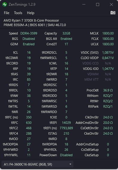 RAM: 32GB (3600MHz) DDR4 CL16 (DOCP enabled)