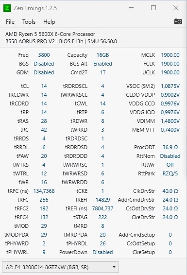 Но решил на всякий случай VDD(оба)поднять чуть выше, т.к. при такой частоте и таймингах в таблице рекордов ставят даже 1.1.