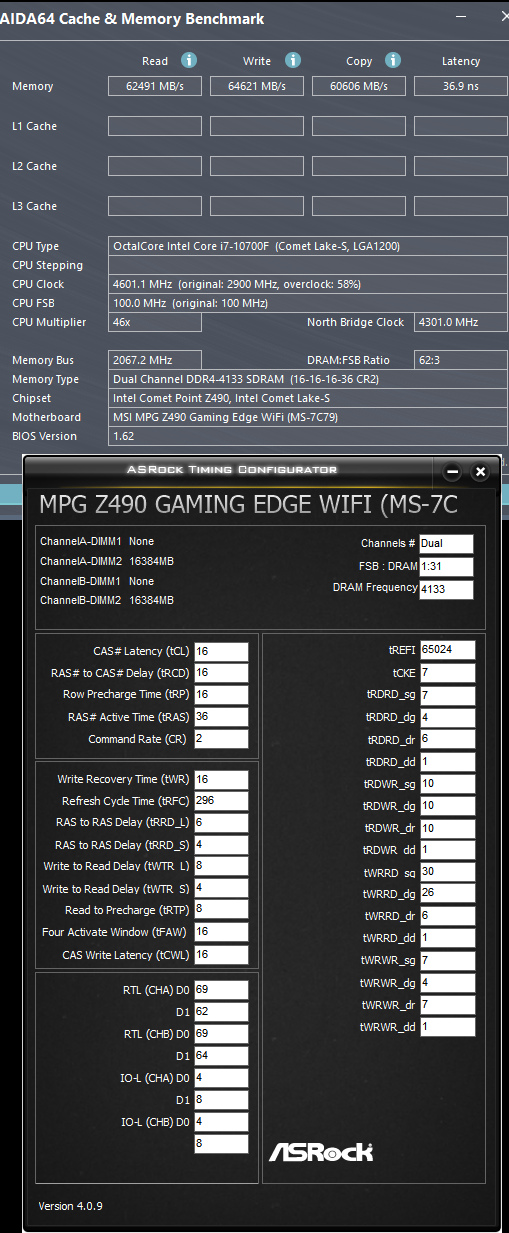 Первичные и вторичные из второго столбца простой таблицы, кроме tWTRL и tWTRS, вместо 6 и 2 стоит 8 и 3. Третичные из первого столбца. tRF и tREFI увеличил. Ошибок нет. Есть смысл еще что то менять в таймингах? #77