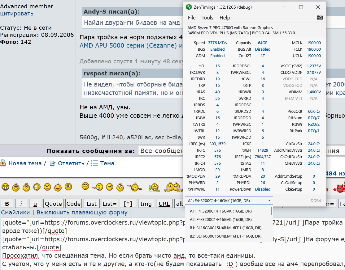 Просохатил, что смешанная тема. Но если брать чисто амд, то все-таки единицы даже на apu. С учетом, что у меня есть и те и другие(микроны с бидаями двуранги), а кто-то(не будем показывать ) вообще все чипы на ам4 перепробовал, выводы достаточно авторитетные.