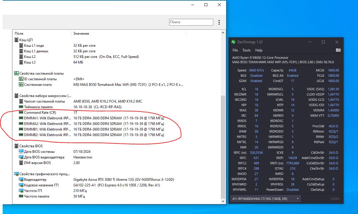 Для вариантов 2x8 Gb так же можно рассмотреть варианты покупки: - Patriot Viper Steel 4000 и 4400 Мгц (маркировка PVS416G400C9K и PVS416G440C9K), Patriot Viper RGB 4000 Мгц (маркировка PVR416G400C9K). XMP профиль в этих комплектах должен быть именно 19-19-19-39. - Team Group T-Force XTREEM с XMP 4000, 4133, 4300 и 4500 Мгц (маркировка начинается с TXKD416G4, в РФ только на Авито, либо заказывать с США). На авито брать можно модули с датой производства от 2019 года (дата у G.SKILL Trident Z указана на голограмме на каждой планке "2020 sep" - сентябрь 2020 года). Брать старый B-die за цену Яндексмаркета не советую. Перед покупкой нужно зайти на сайт Бидайфаиндер и удостовериться, что в рассматриваемых модулях действительно B-die: B-Die Finder, так же можно проверить модули по маркировке на hardwareluxx.de. Частота памяти 4000 Мгц и даже 4600 Мгц не является гарантом того, что чипы окажутся именно B-die, уже давно выпускаются модули 4400 Мгц и выше с чипами hynix D-die (например Thermaltake TOUGHRAM ROO9D408GX2-4600C19A, брать их не стоит). Так же косвенным фактором наличия чипов B-die являются тайминги tRCD и tRP - у B-die они отличаются на +1 (редко +2) или равны tCL, например 14-14-14-34, 15-16-16-36 или 17-18-18-38. Если вы видите память 16-19-19-38, то это скорее всего не то, что вы ищите (например тот же Thermaltake TOUGHRAM 4600 Мгц 19-26-26-45). Сейчас на рынке представлены комплекты памяти с чипами Samsung B-die на примере G.SKILL F4-4000C16D-32GTZR с таймингами по XMP 16-19-19-39 и напряжением 1.40V, но покупать такое и рассчитывать на разгон памяти без "отвала tRCD" к примеру 16-16-16 или 16-17-17 я бы не стал. В пример могу привести комплект G.SKILL F4-4600C18D-16GTZR с XMP 18-22-22-42, который на заявленной часте в разгоне работал только с tRCD = 20.