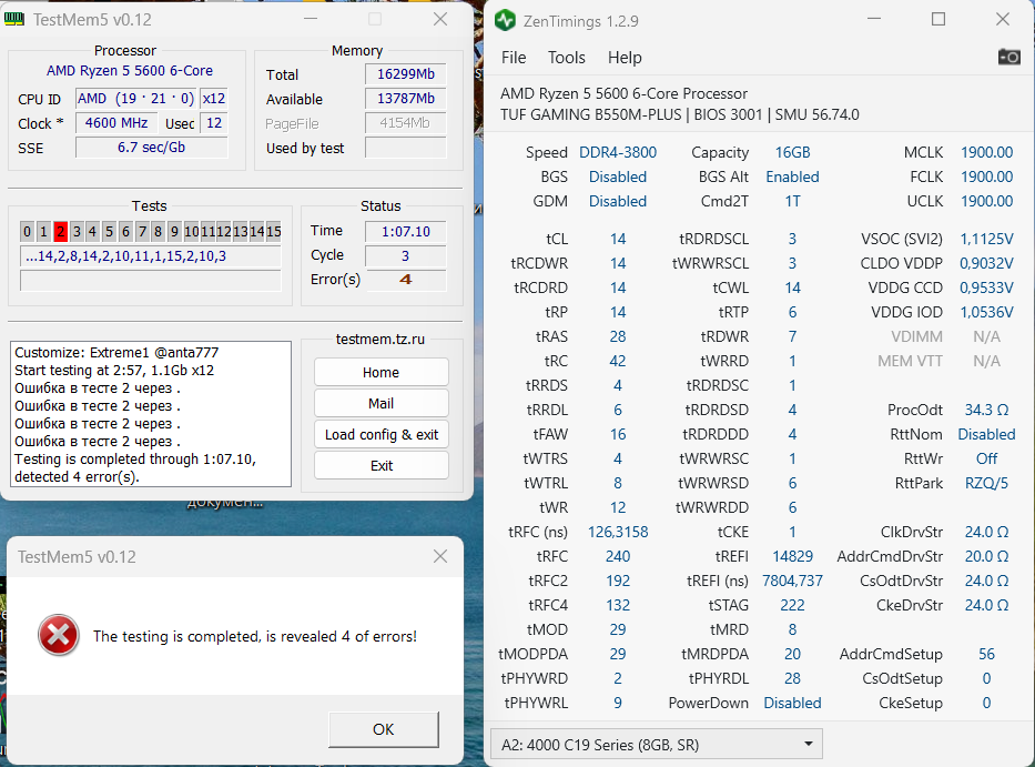 Доброго времени суток. Господа, подскажите, с каким таймингом или чем связана ошибка в тесте 2 от уважаемого anta777? Память на чипах самсунг бдай и сверху установлен 120мм вентилятор для дополнительного охлаждения, напряжение на памяти 1.54в.