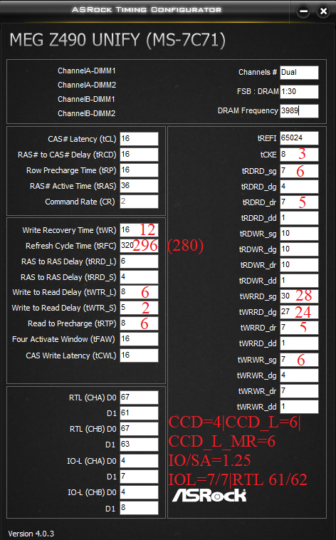 anta777 Понял, спасибо. Четность/нечетность для этого тайминга не имеет значения? У меня они сейчас стояли в 8 (до того как я поставил 6 по совету выше), т.е. мне в любом случае следовало их менять. WR_MR/RTP_MR были 12/24, поставил их 8/16, все верно?