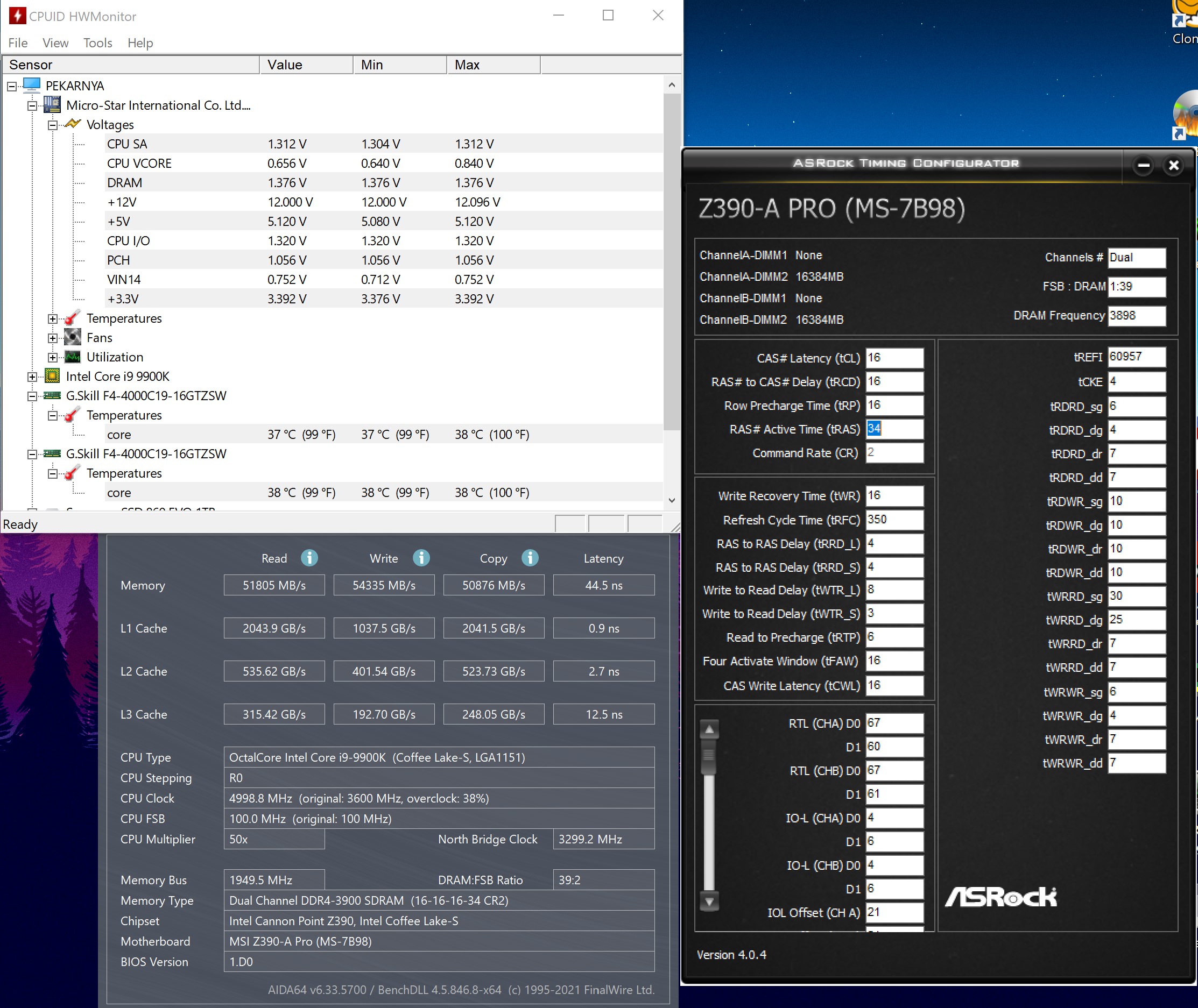 Разгон памяти у современной DDR4 (16 банков,RRDS=4,FAW=16,BL=8) эффективен только при tRC<=64,если каждый новый блок чтения происходит с разных банков памяти. Для 4-х слотовых плат при разгоне желательно в биосе отключить неиспользуемые слоты. Для максимальной производительности памяти значение tRFC в тактах для 8-Гбитных чипов должно быть кратно 8,а для 16-Гбитных чипов - 16. Если это правило не соблюдать, то будут вставлены лишние такты при каждом цикле обновления памяти. Для желающих максимально снизить tRFC. Делим tRFC на сумму tRCD,tRTP и tRP. Если результат ближе к 4, то снижать tRFC можно по 4 такта. Если результат ближе к 2, то снижать tRFC можно по 2 такта. Это связано с тем, что обновление происходит субмассивами, которые обязательно кратны 2.