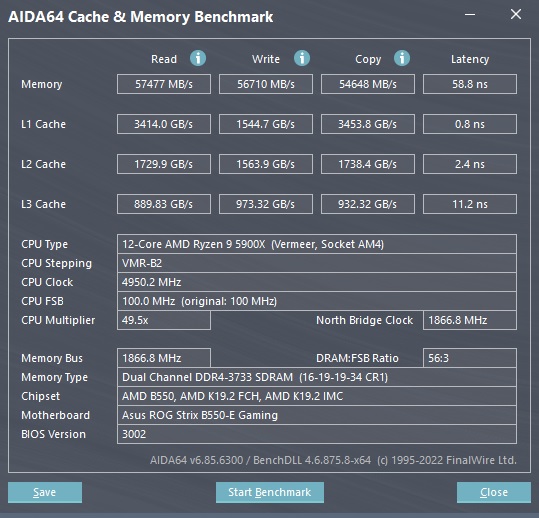 Поставил шину 1900 и память 3800 на тех же таймингах, но напряжение 1.45, на 1.4 не стартовала, загрузил систему, тесты стали луше примерно 51 было рид стало 53, тестмем прогнал легкий ок, потом решил опустить напругу чуть 1.41-1.44 но после попыток в биос стал виснуть каркозябры иероглифы вылазить и даже на 1.45 не грузит винду, мистика просто