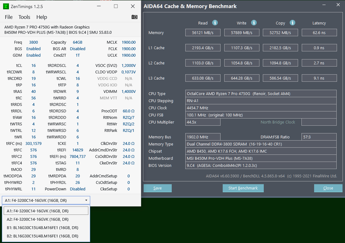Для вариантов 2x8 Gb так же можно рассмотреть варианты покупки: - Patriot Viper Steel 4000 и 4400 Мгц (маркировка PVS416G400C9K и PVS416G440C9K), Patriot Viper RGB 4000 Мгц (маркировка PVR416G400C9K). XMP профиль в этих комплектах должен быть именно 19-19-19-39. - Team Group T-Force XTREEM с XMP 4000, 4133, 4300 и 4500 Мгц (маркировка начинается с TXKD416G4, в РФ только на Авито, либо заказывать с США). На авито брать можно модули с датой производства от 2019 года (дата у G.SKILL Trident Z указана на голограмме на каждой планке "2020 sep" - сентябрь 2020 года). Брать старый B-die за цену Яндексмаркета не советую. Перед покупкой нужно зайти на сайт Бидайфаиндер и удостовериться, что в рассматриваемых модулях действительно B-die: B-Die Finder, так же можно проверить модули по маркировке на hardwareluxx.de. Частота памяти 4000 Мгц и даже 4600 Мгц не является гарантом того, что чипы окажутся именно B-die, уже давно выпускаются модули 4400 Мгц и выше с чипами hynix D-die (например Thermaltake TOUGHRAM ROO9D408GX2-4600C19A, брать их не стоит). Так же косвенным фактором наличия чипов B-die являются тайминги tRCD и tRP - у B-die они отличаются на +1 (редко +2) или равны tCL, например 14-14-14-34, 15-16-16-36 или 17-18-18-38. Если вы видите память 16-19-19-38, то это скорее всего не то, что вы ищите (например тот же Thermaltake TOUGHRAM 4600 Мгц 19-26-26-45). Сейчас на рынке представлены комплекты памяти с чипами Samsung B-die на примере G.SKILL F4-4000C16D-32GTZR с таймингами по XMP 16-19-19-39 и напряжением 1.40V, но покупать такое и рассчитывать на разгон памяти без "отвала tRCD" к примеру 16-16-16 или 16-17-17 я бы не стал. В пример могу привести комплект G.SKILL F4-4600C18D-16GTZR с XMP 18-22-22-42, который на заявленной часте в разгоне работал только с tRCD = 20.