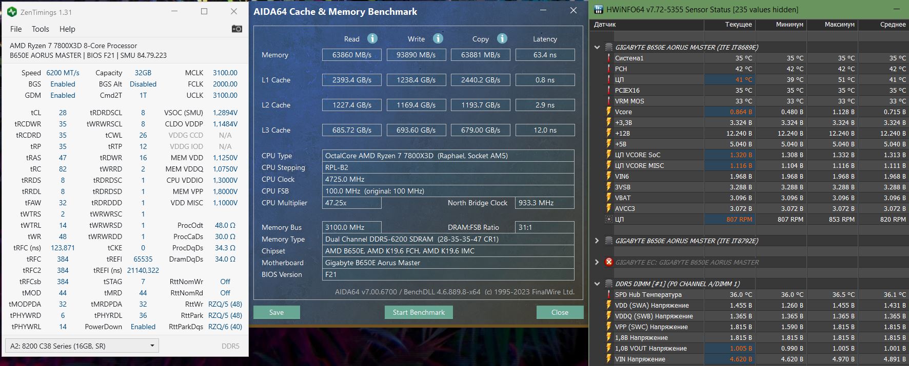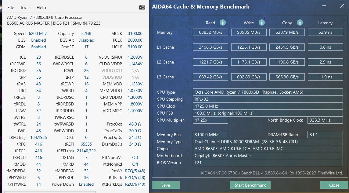 Касаемо моего фронта, удалось более менее обуздать 6200, достигнута стабильность на 6200cl28, но результатом я остался не очень недоволен - По записи не упирается в потолок и задержка все же повыше чем на 6400cl30-38. При этом дальнейшее поджимание всех вторичек, и пробы дальше ужимать tRFC ни к чему не привели - скорость +- та же, а задержки даже хуже. Правда есть одно но, когда я гонял 6200cl28-35-35, я не знал еще толком что делает gdn Все тесты проходили с PD GDN RES On. Возможно поэтому мнение по 6200 у меня не верное. Скрины