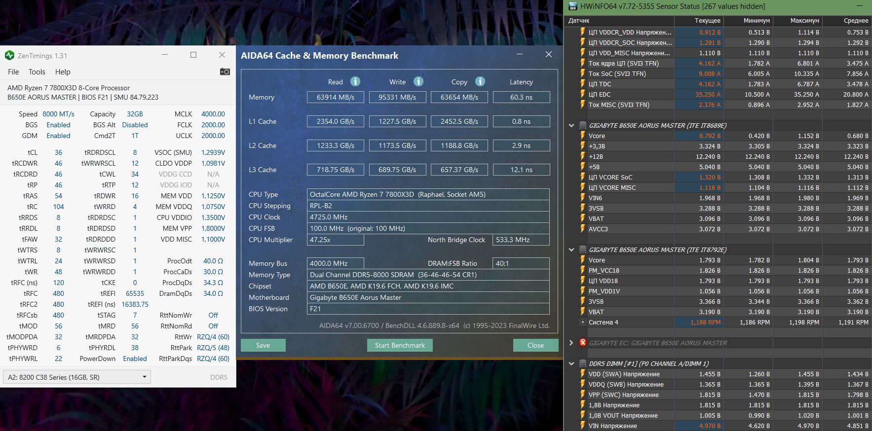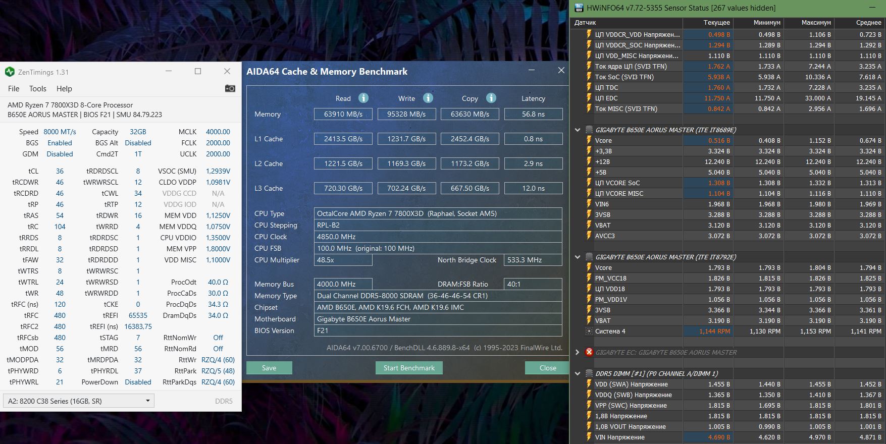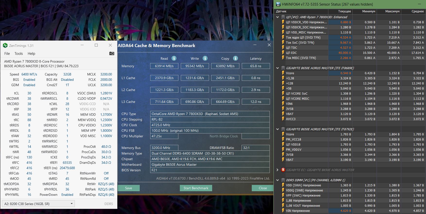 Добрый! Вы немного не поняли, обратите внимание на название скрина, это я запускал 6400 с проверенными минимально доступными напряжениями но поверх xmp профиля. Чтобы продемонстрировать возросшие задержки. Это больше имеет отношение к моей невозможности запуска на 8000 без xmp... И если посмотрите на показания HWinfo там увидите что реальное напряжение 1.37. По поводу православного напряжения - все дорожки уже истоптаны, но та которая ведет к просветлению пока к сожалению скрыта от меня.