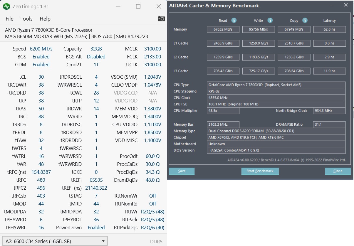 По 8000, пока по прежнему это самый шустрый из стабильных вариант для меня, но только через xmp профиль. Все попытки завести эту частоту с этими же таймингами но в обход xmp - нет запуска. Пробовал руками перенести все возможные значения напряжений к тому что рисует HWInfo, и с учетом просадок, с выставлением сопротивлени. Пробовал и с превышением напряжений, достаточно много комбинаций - не заводится. Пока не смог разобраться... Думаю на 6400 запуститься через xmp, затем руками перенести все из hwinfo и запуститься уже без xmp и сравнивать досконально..хз. Но очень интересно что по факту делают два параметра, которые появляются при активации xmp - Low Latency support и Xmp/Expo highbrandwich memory support. Еще буду пробовать с xmp напряжения понижать, но пока в фокусе после 6200 оказалась 6400...с ней вообще все мутно для меня.