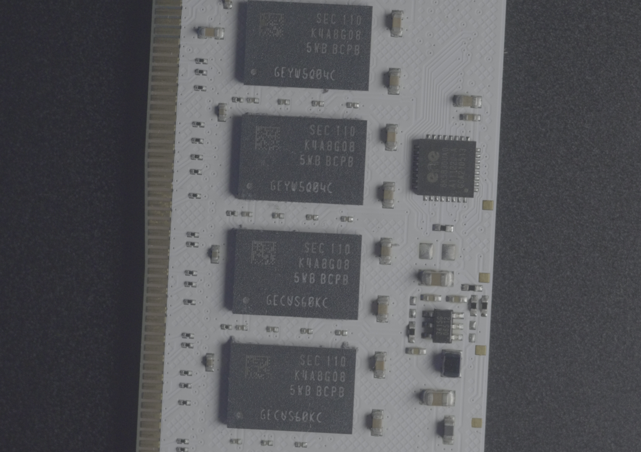 Ревизия PCB - A0, A1 и A2 Фото компоновки различны вариантов можно посмотреть ТУТ и ТУТ Ревизия PCB A2 характерна для высококачественной памяти, A0 и Bad bin для среднего качества, A1 почти не гонится. Внешние отличия - распределение DRAM IC A1 равномерно, А2 DRAM IC в левом и правом нижних углах на обоих концах (2 группы по 4 модуля в каждой), без компонентов в середине печатной платы. Преимущество ревизии A2 заключается в том, что чипы памяти находятся ближе друг к другу и на меньшем расстоянии друг от друга. Независимо от того, поступает ли сигнал от чипов к контроллеру памяти ЦП или чипы общаются друг с другом, в целом электрические сигналы теряются меньше и имеют более равномерную интенсивность. Единственная проблема заключается в том, что длина линии между четвертым и пятым чипами приводит к потере и большей задержке, чем в ревизии A1. Результаты частот на A2 выше предельной частоты A1 в среднем на 300 МГц.