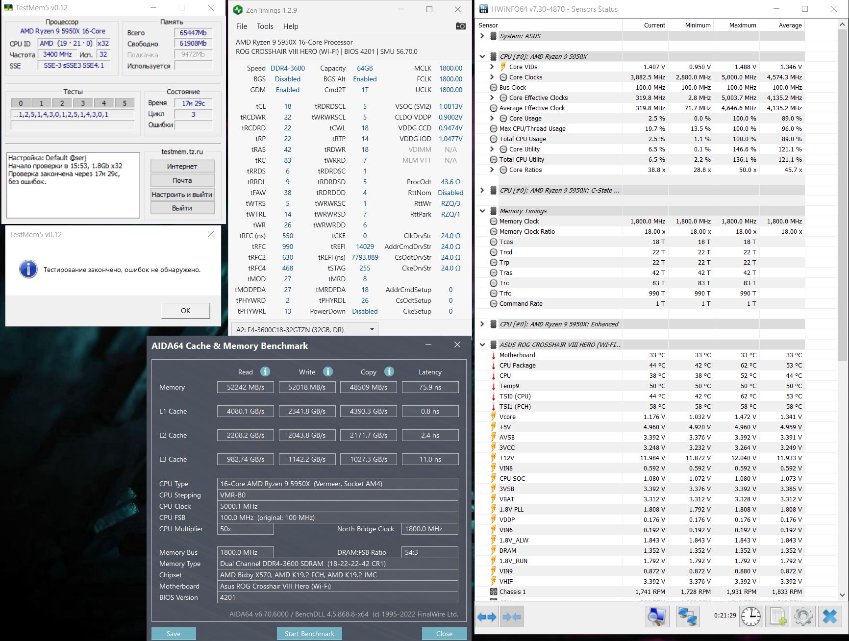 Внезапно выкинуло из игры - все логи чистые, как будто просто альт+ф4 нажал, потом бсод опять же при игре с невнятным дампом и ошибкой "Код ошибки: 0x0000007f (0x0000000000000008..." Проц скинул в сток и проверил память - ошибки в пресете анта777@эксрим на 13 тесте и реже на других, в основном на 2м и далее циклах. Бинарным методом быстро выявил, что это tRC.