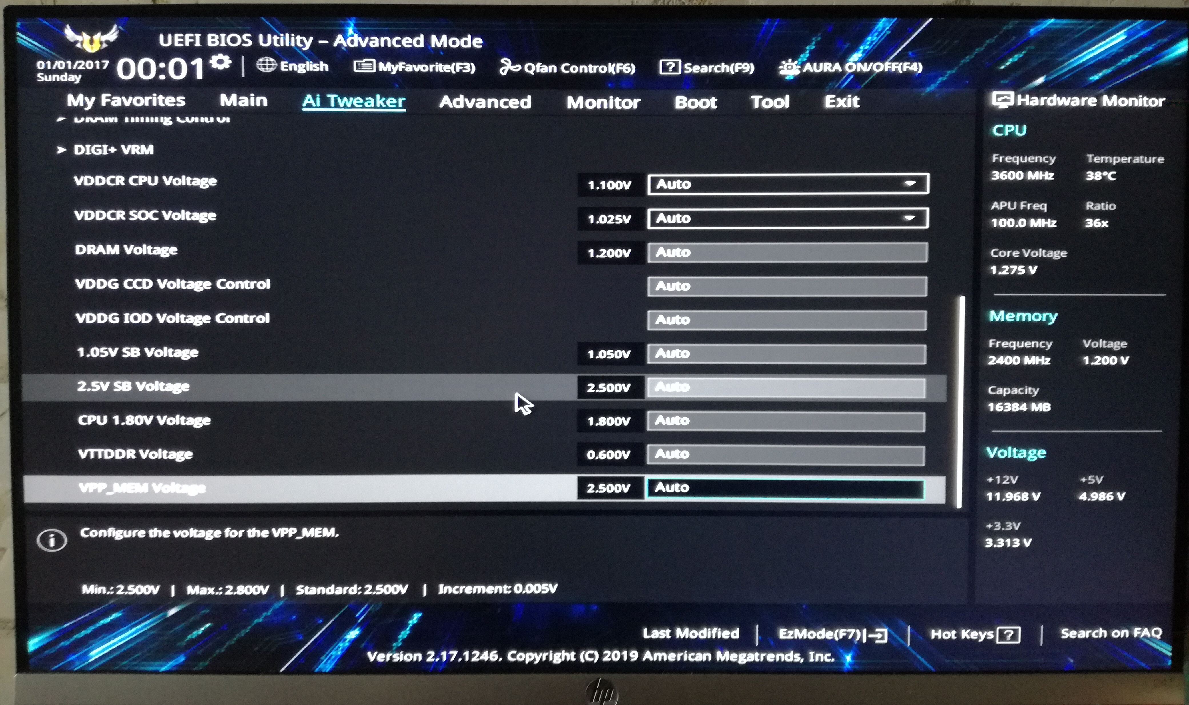 Комп не запускается на 3600 на автомате с напругой 1.45