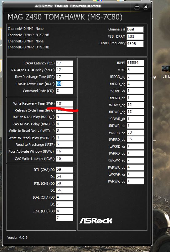 Посоветую искать максимальную частоту памяти, при которой tRC<=64 В моём случае tRC=tRAS+tRP