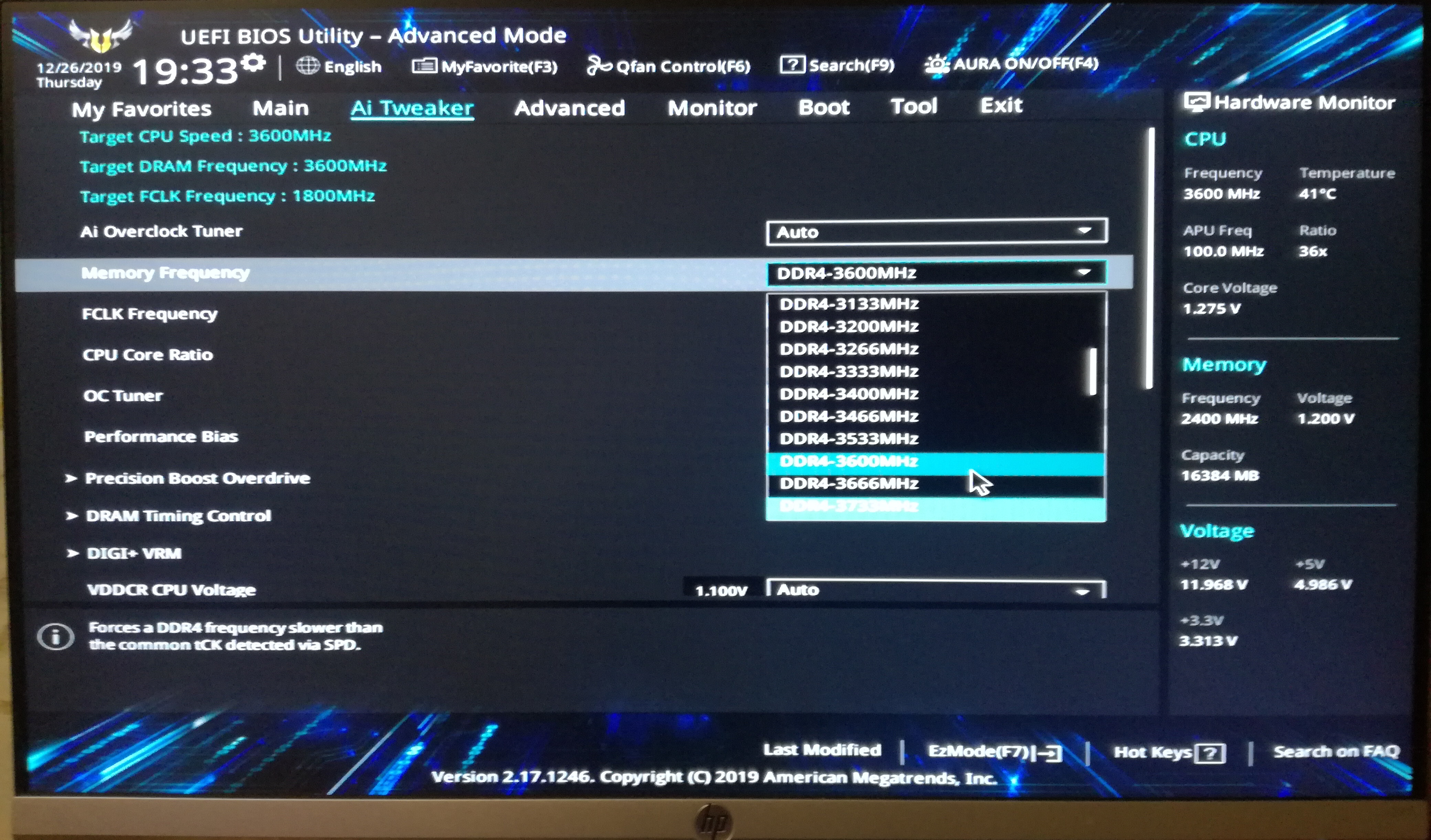 8. Если нет бута на частоте памяти 3800Mhz, то проверяем возможности IF вашего CPU, для этого выставляем частоту памяти на 3200Mhz, а IF например на 1900, пробуем загрузиться...