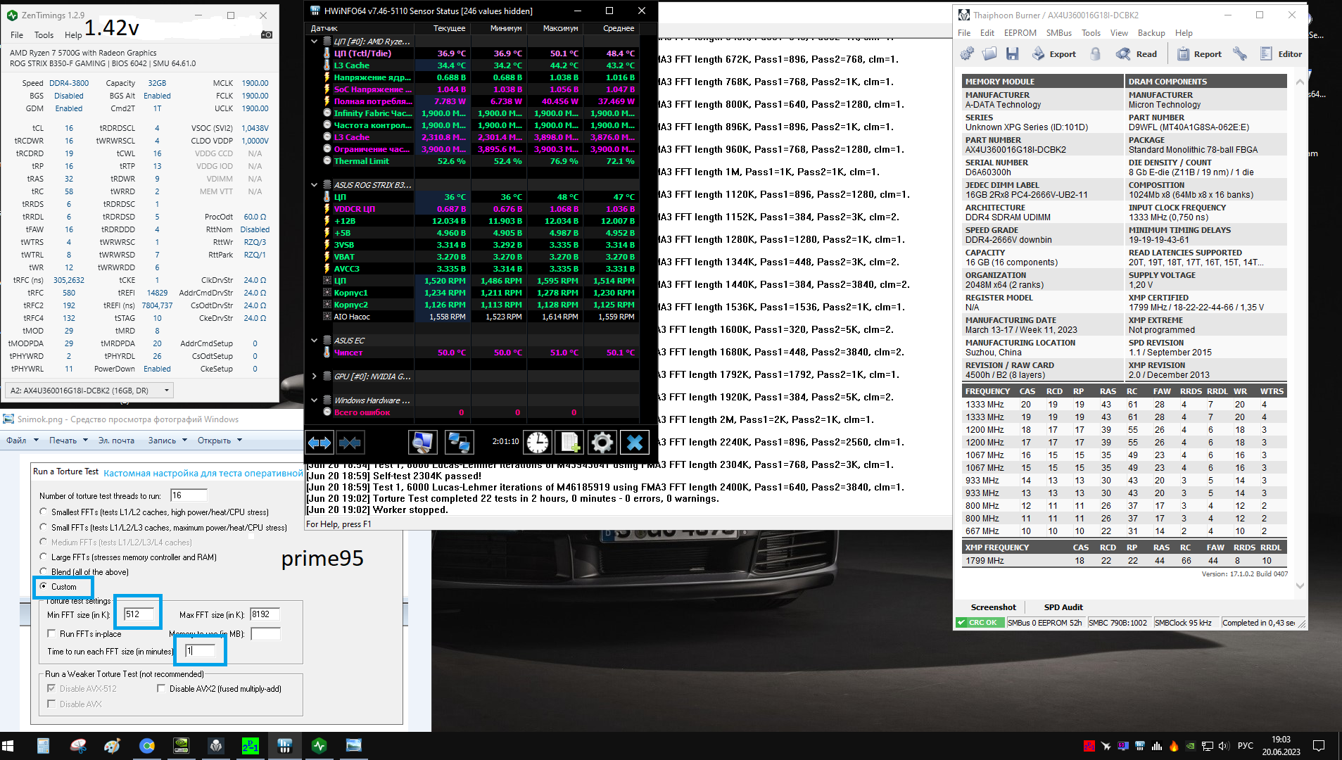Оперативная память ADATA XPG GAMMIX D20 16x2 dual rank. Память явно может больше по частоте, чем я наковырял для себя в разумных приделах по напряжению 1.42v. На моей плате нормально работает только 60 procodt. Иначе нестабильность даже на 3600 с авто таймингами. Заметил такую штуку, soc никак не влияет на ошибки по памяти, а вот система, может вывалиться в черный экран с работающими вертушками.Сори, напряжение на картинке поставил в начале не верно, верно 1.42v. Картинку поправил.