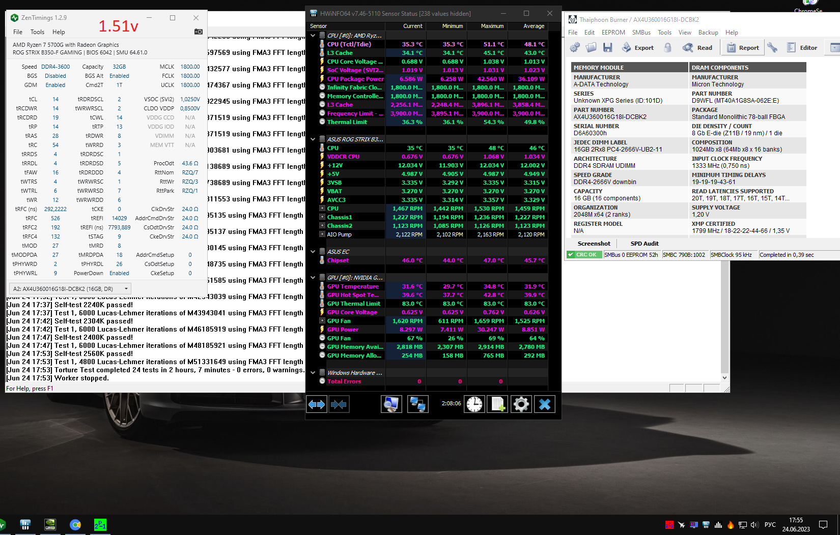 первый раз столкнулся с адскигорячими DDR4 Asgard Freyr 16x2 XMP 3600cl14 1.45 (Samsung B-Die) разогнал до 3800 вроде полет норм, легкий пресет без ошибок был, но когда начал ставить эктрим или юсмус то летят ошибки.... до этого были вайперы 4400 16гб и они были топ отборник б дай и холодные можно было ставить 1.5 а к этими даже при 1.35 во время теста ставлю палец и чувствую очень горячую температуру думаю около 50 )) понятно что там после 48 ошибки летят у меня первый опыт с такой памятью двуранг б дай и такой горячий. нужна стабильность есть смысл опускать до 1.3 и поднять немного тайминги ? иногда проходит юсмус 3 цыкла на 3800 15 15 15 36 t1 gdm off днем в комнате жарко у меня солнечная сторона тест уже не проходит )) вероятно нагрев чипов что б вы посоветовали ? поднимать тайминги и снижаться до 1.3 ?