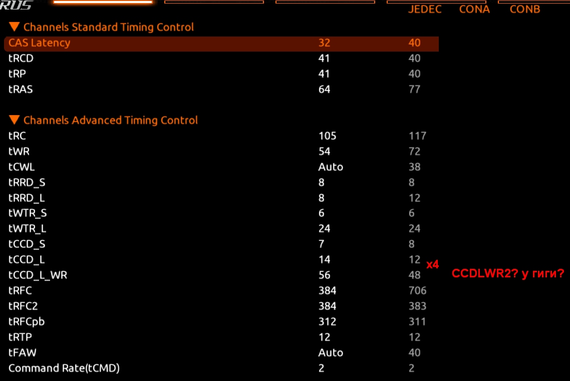 Таак, как бы совместить шапочное указание "...CCDLWR всегда в 2 раза больше,чем CCDL, интервал 16-32. CCDLWR2 всегда в 4 раза больше, чем CCDL ..." если глянуть↓ картинку из биоса гиги