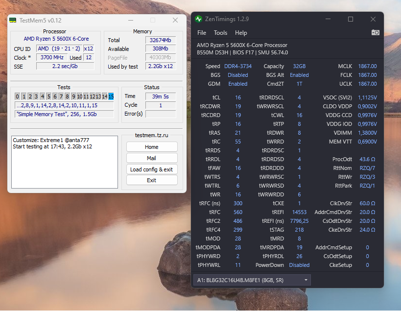 Приобрел плашки от польского вендора собраны на чипах Nanya A-Die 20nm. 2х16. Штатная частота 3200 при таймингах 16-18-18-20. Почитав инфу с форума пока что увеличил до 3733 МГц частоту. Манипуляции с Ryzen Calculator не проводил, так как моих чипов нет для расчета. DRAM Voltage 1.4v. Дальше поднимать опасаюсь. На частоте 3800 комп начинает спустя рандомное время перезагружаться. Может есть совет, что дальше можно поднимать точно.