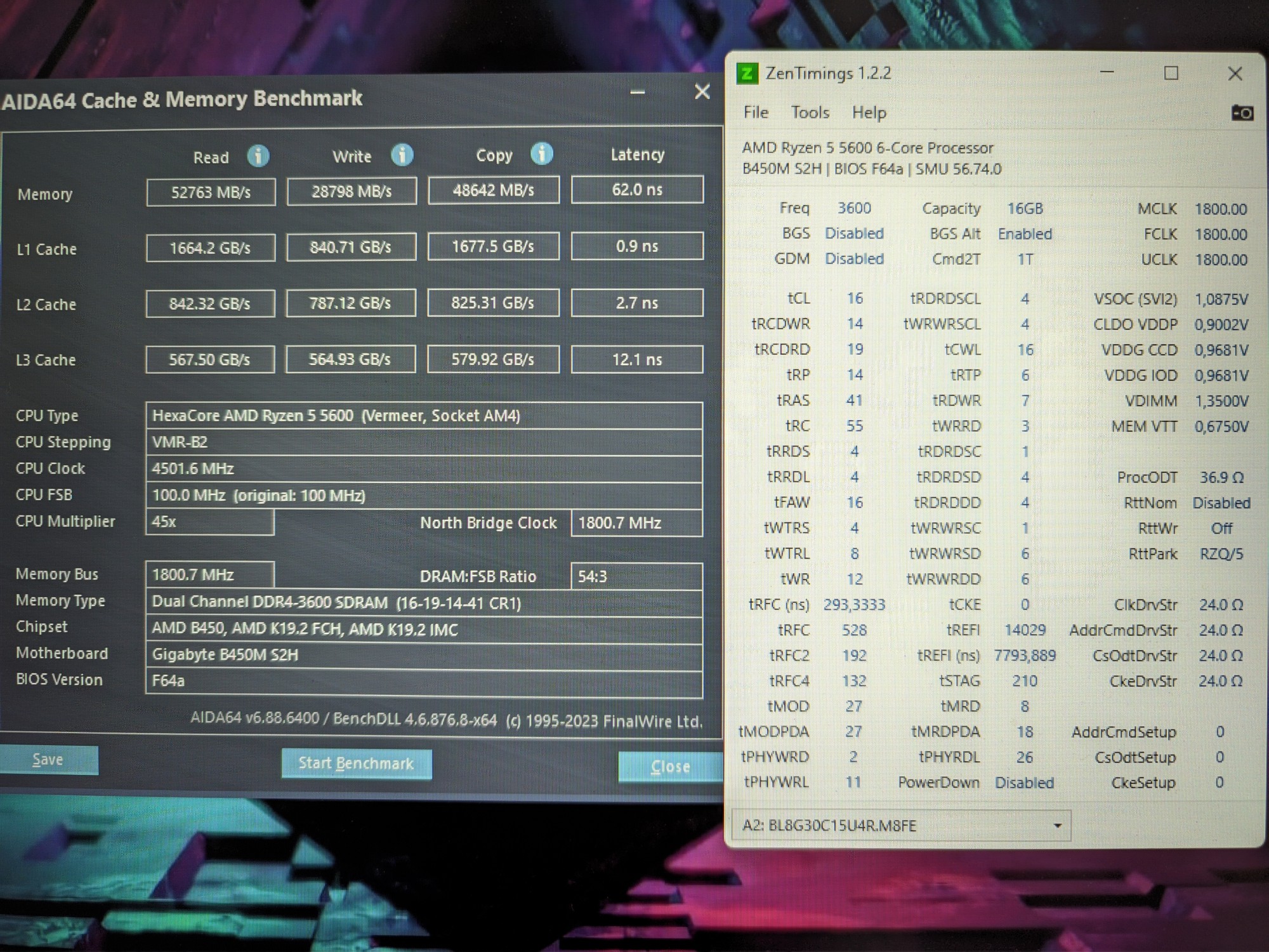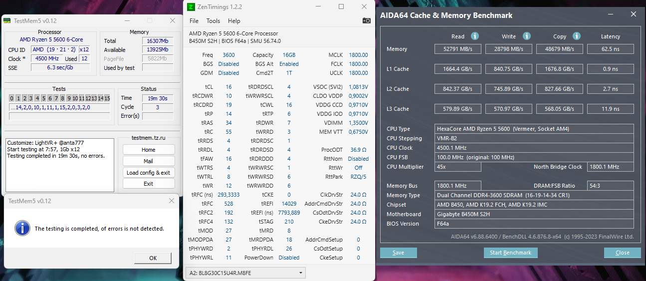 Цель максимально ужать тайминги на 3600 без поднятия напряжения (выставлено 1.35 v., по факту 1.37 v.). Возник вопрос стоит ли придерживаться "правила" RC=RP+RAS? Просто RC ниже уже не идет и тут либо крутить +-RP/RAS в пределах RC, либо забить и ужимать RAS до предела (на 35 заводилась, может и ниже пойдет). Пробовал еще на таких, тоже без ошибок идет.