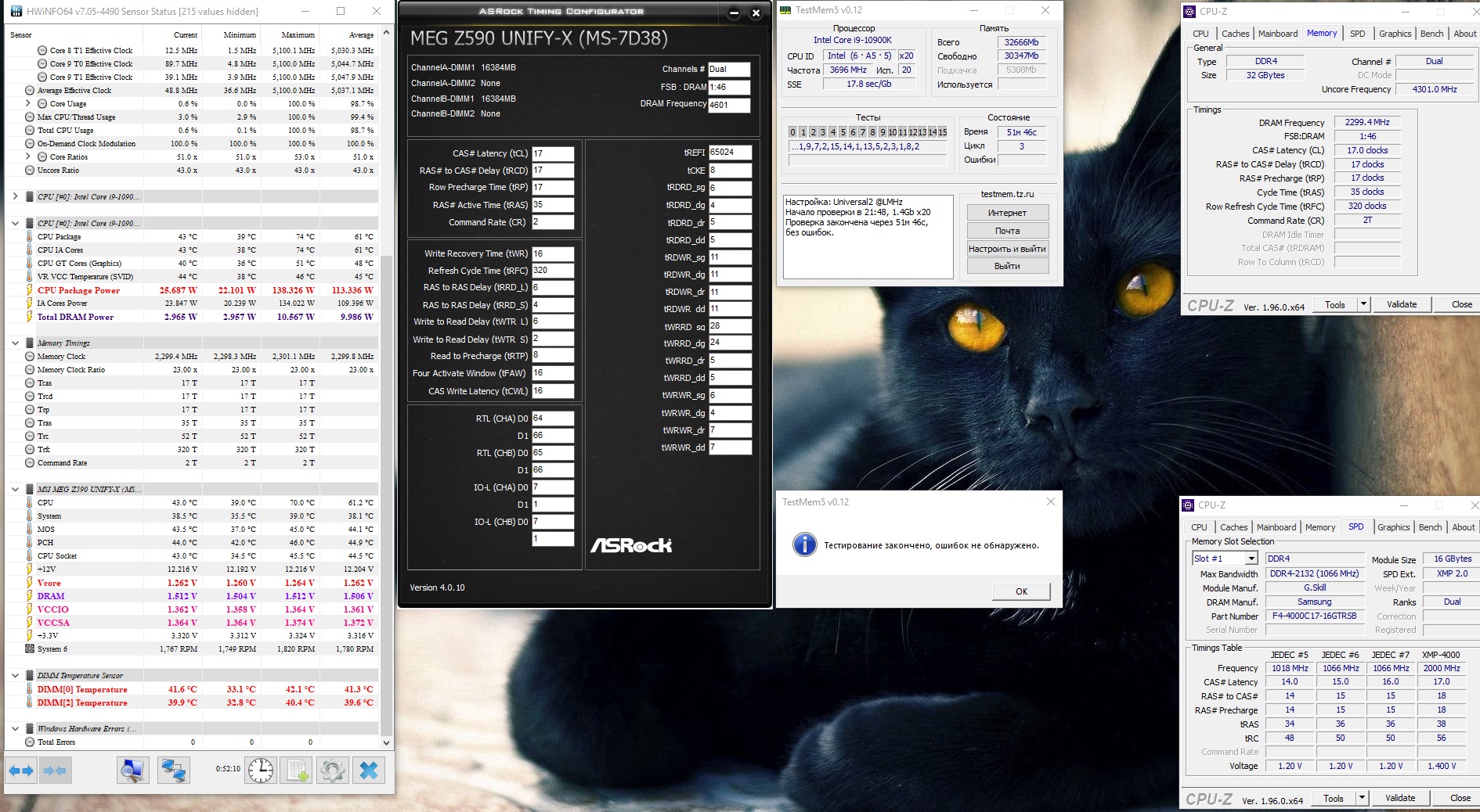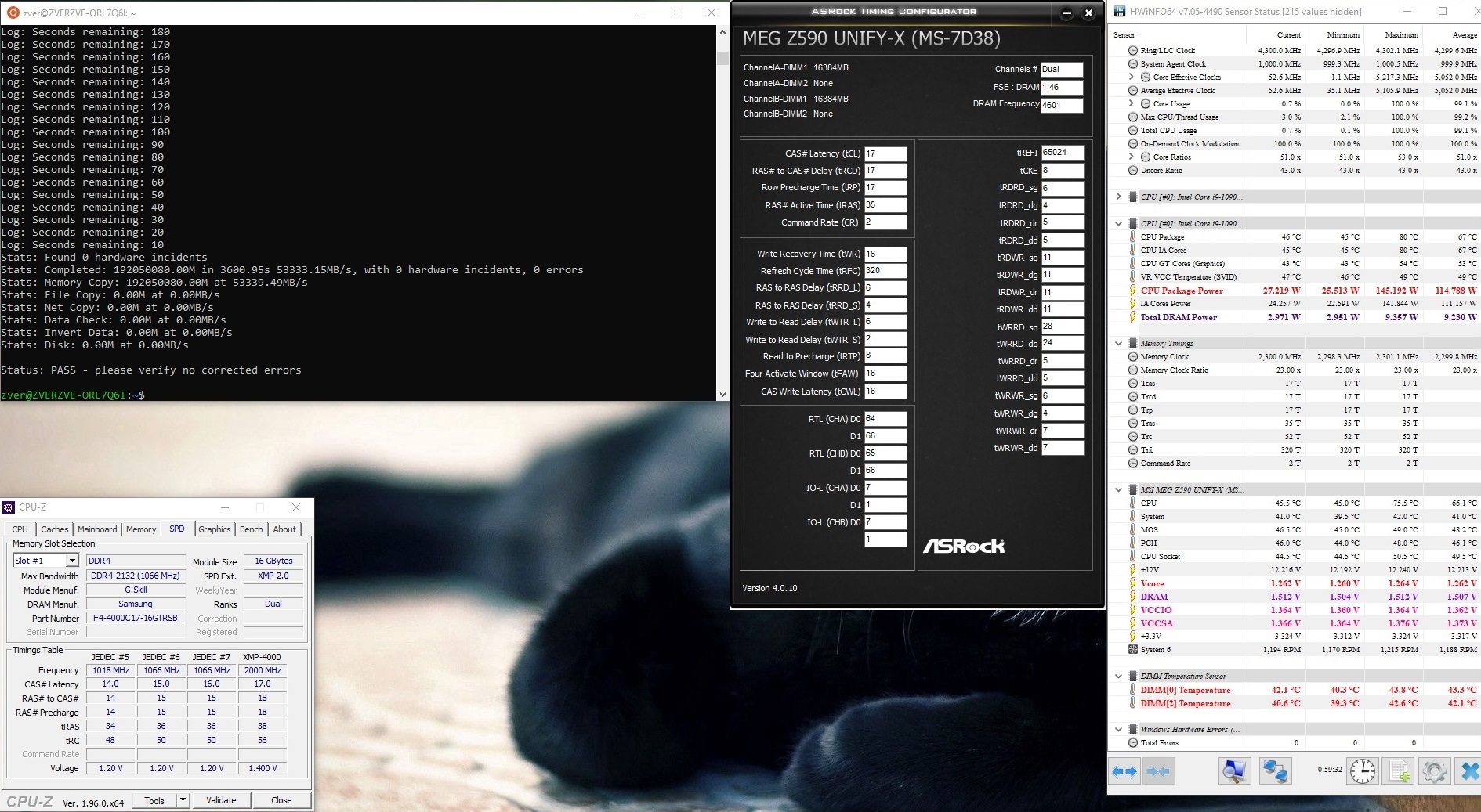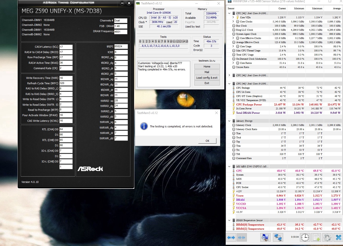 Какие еще tREFI стоит попробовать? Может зайти с другой стороны, чуть уменьшить RFC? С охлаждением проблема, т.к. между планками совершенно нет никакого зазора. Видюхи нет, но есть 200Вт с процессора.