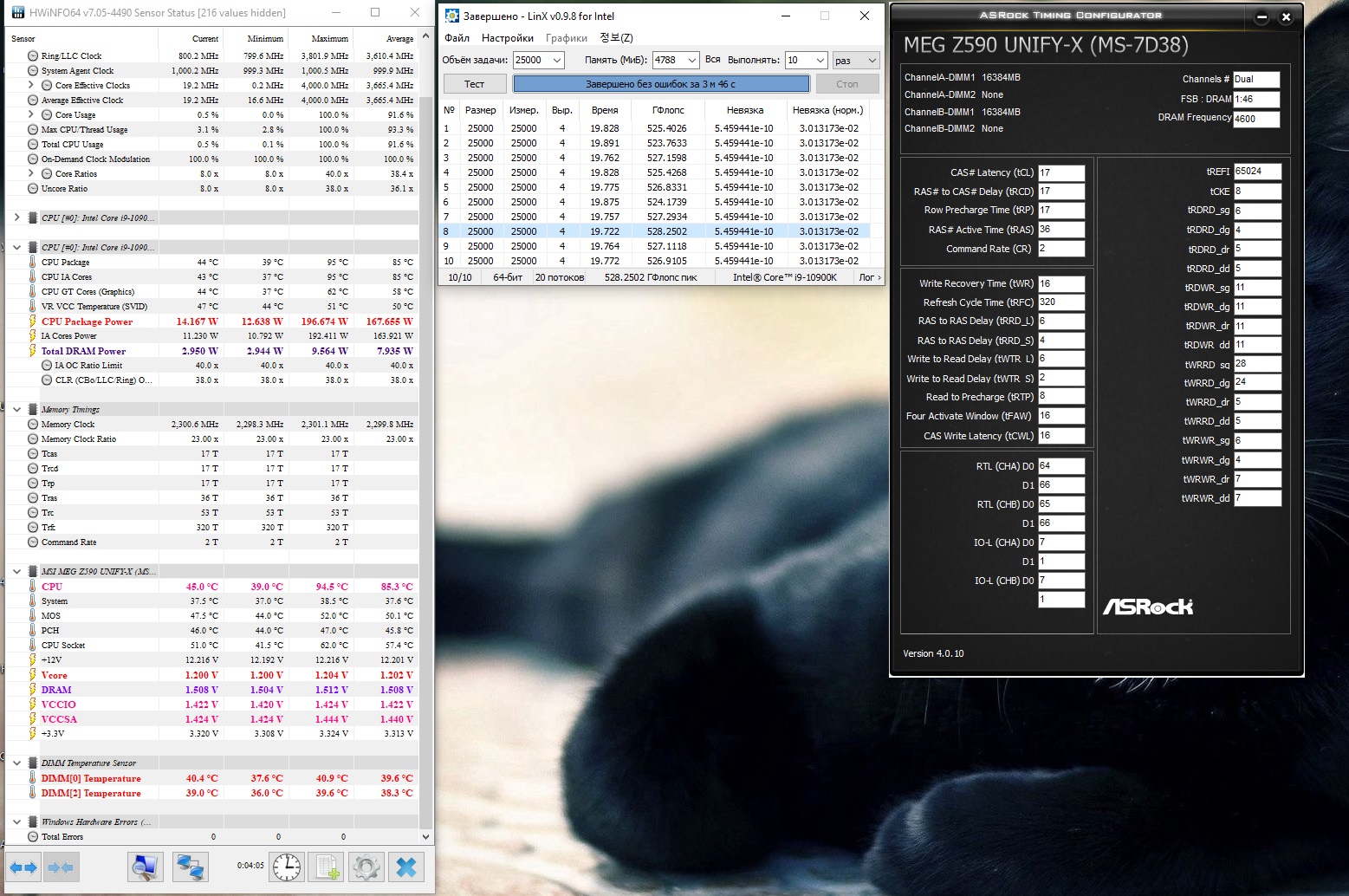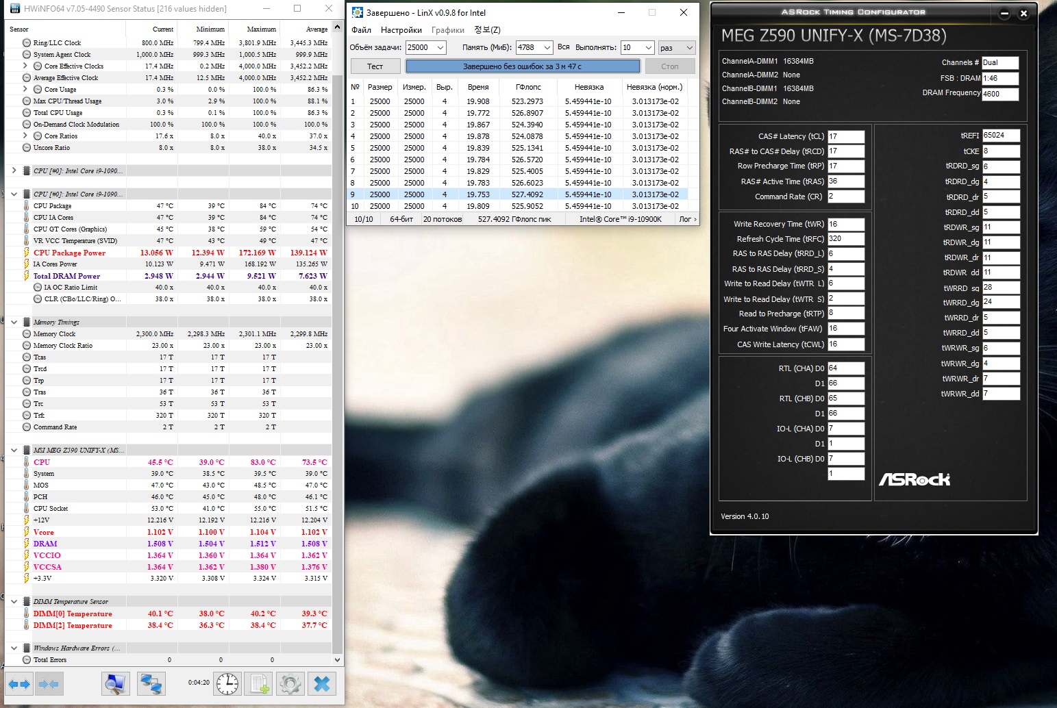 Часть 1. Начальные тесты. Началось из этого конфига 4600 17 17 1.39 1.39 ( Sa плата накидывает зависимо от интенсивности тестов. От 0.01 до 0.02 даже. IO держит ровно). Процессор в стоке/ vCore - avto.