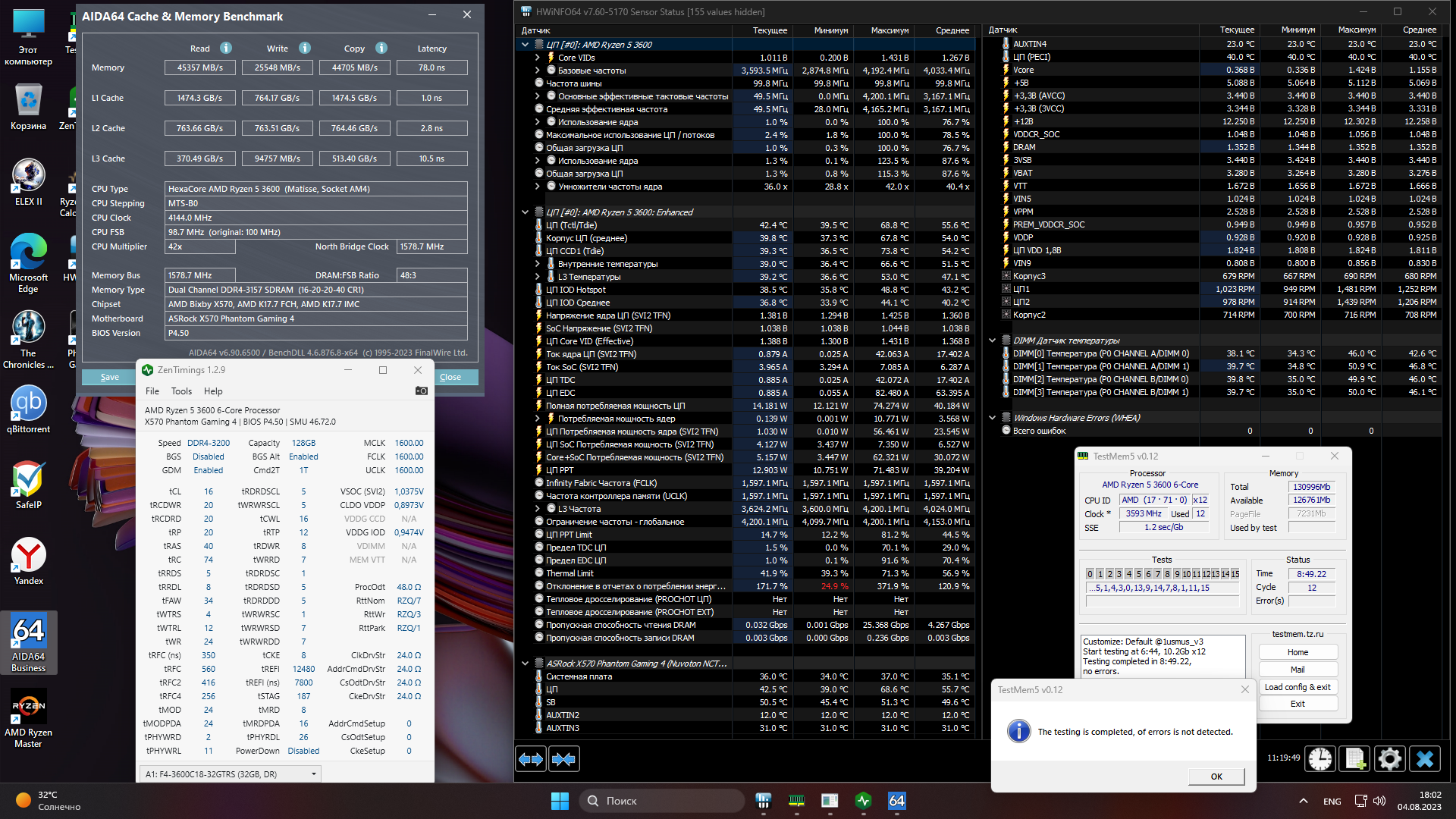 Я, похоже, неправильно разгоном оптимизацией таймингов занимался - на ошибки изолированным тестом проверял, а на производительность/нехватку напряжения/пережатые тайминги - нет. Хочу теперь попробовать после каждого поджима таймингов собирать среднее из 5 тестов аиды и, например, короны или блендера. Этого будет достаточно, или сейчас есть более правильный набор тестов?