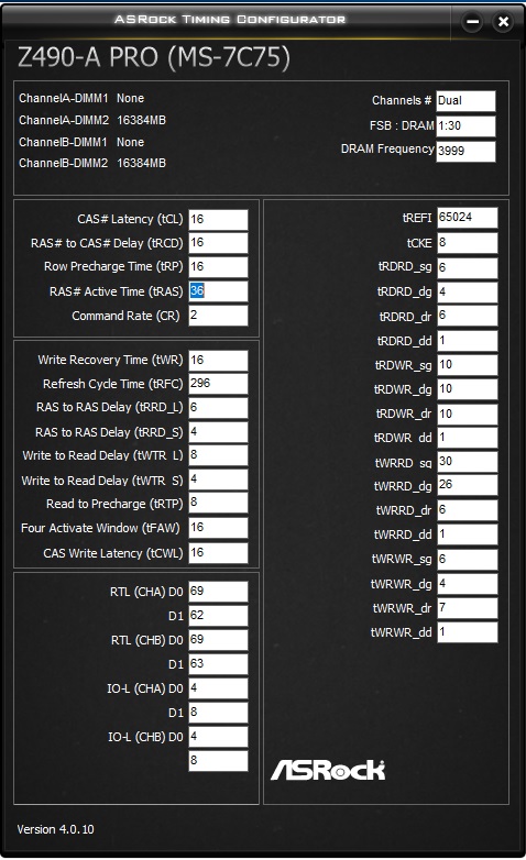 Below are the typical tRFC in ns for the common ICs: IC tRFC (ns) Hynix 8Gb AFR 260 - 280 Hynix 8Gb CJR 260 - 280 Hynix 8Gb DJR 260 - 280 Micron 8Gb Rev. E 280 - 310 Micron 16Gb Rev. B 290 - 310 Samsung 8Gb B-Die 120 - 180 Samsung 8Gb C-Die 300 - 340