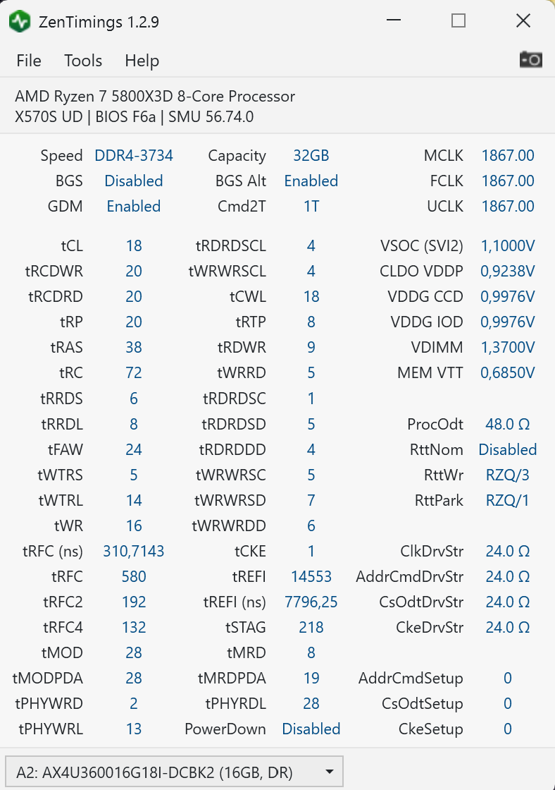 Да поджато понемногу, но не сильно. Пробовал по тестам с реддита d-die выставить, но сыпало ошибками, и хз из за чего ибо все менял. tfrc рекомендовали 560-580 для 3800 частоты.