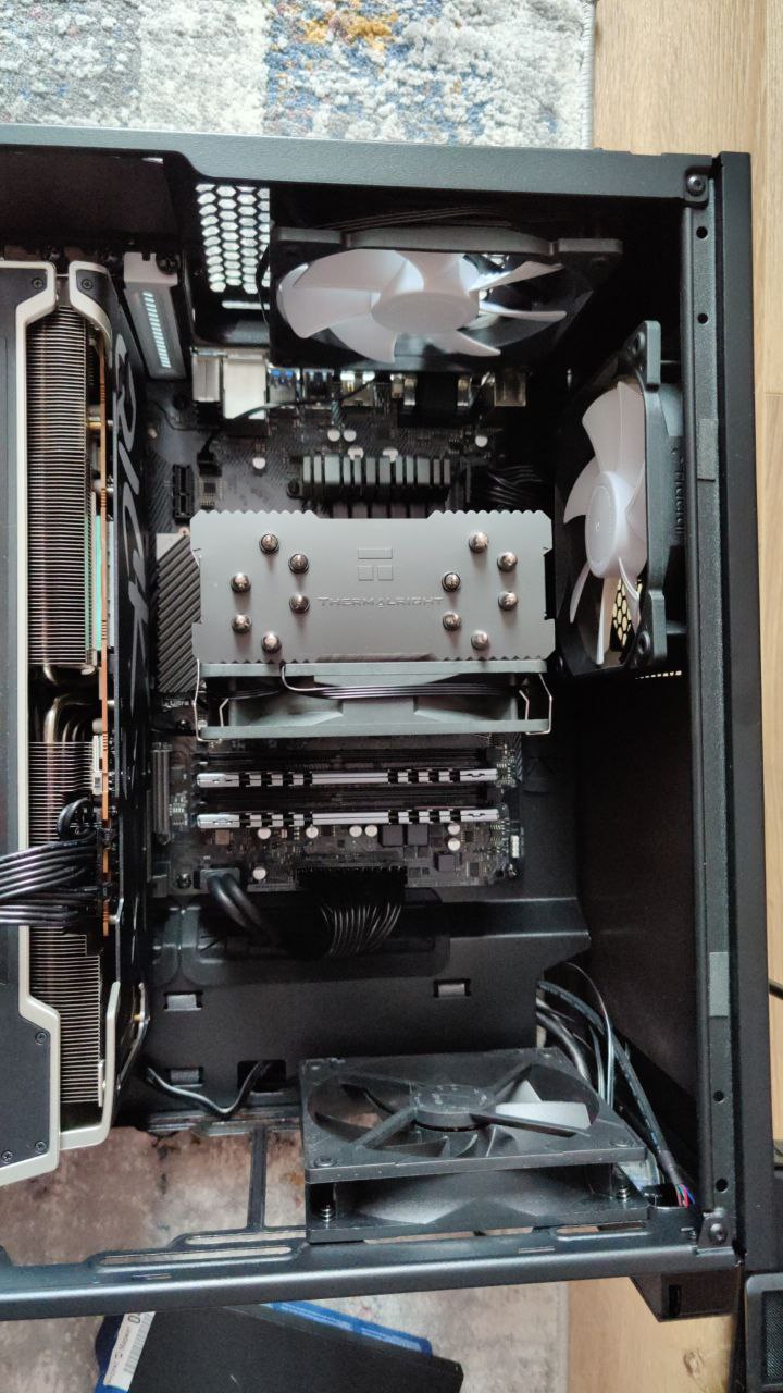 ну вот я тоже думал поставить еще одну вертуху на выдув сверху перед ОС на ЦПУ, но тут на форуме сказали не айс, типа она забирает весь воздух у СО ЦПУ, типа не правильно поток формируется, тем более если вверху на морде стоит на вдув, от неё поток выдувается тем, что перед СО ЦПУ на потолке ...... сейчас у меня одна на выдув, над задним.