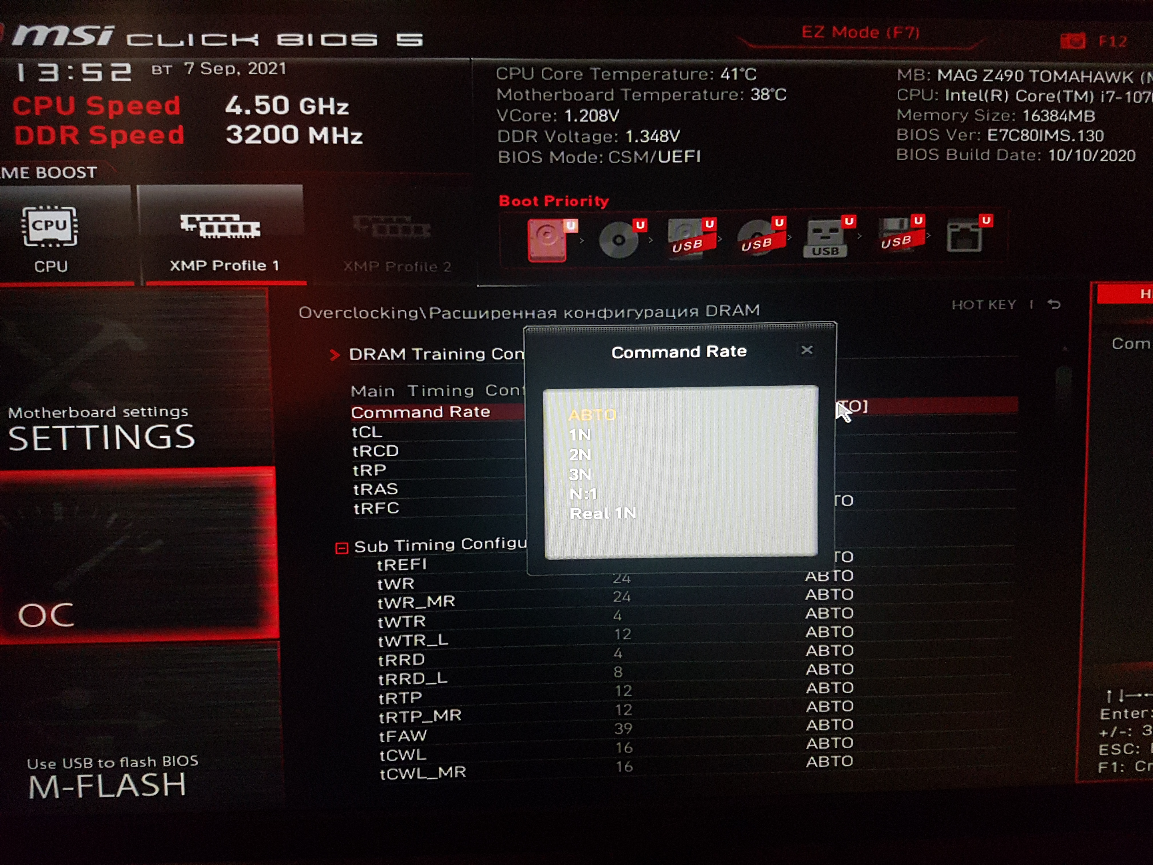 Память G.Skill RIPJAWS V F4-3200C16D-16GVKB (XMP 3200, 16-18-18-38, 1.35 В), материнская плата msi z490 tomahawk, в БИОСЕ вручную выбрал частоту 3200 и тайминги поставил 16-18-18-38, всё остальное на АВТО. Подскажите, пожалуйста, для дальнейшей тонкой настройки: 1. какие-то из параметров в БИОСЕ (фото приложены) обязательно отключить или включить? 2. постараться вручную понизить напряжение или просто зафиксировать на частоте 1.35В? 3. какой из параметров "command rate" (1N, 2N, 3N, N:1, Real 1N) предпочтительней?
