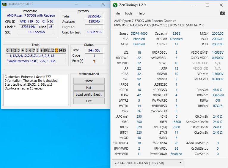 Подскажите, возможно ли добиться работы памяти без ошибок на DDR4000 на процессоре Ryzen 7 5700G? Сейчас запускается, работает но в тестах памяти минут через 30 начинаются ошибки.